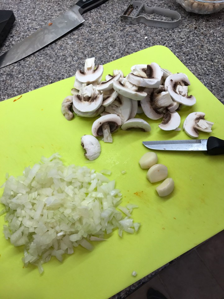 If you’re adding meat- cut into chunks. I’m using turkey today for a healthy change!