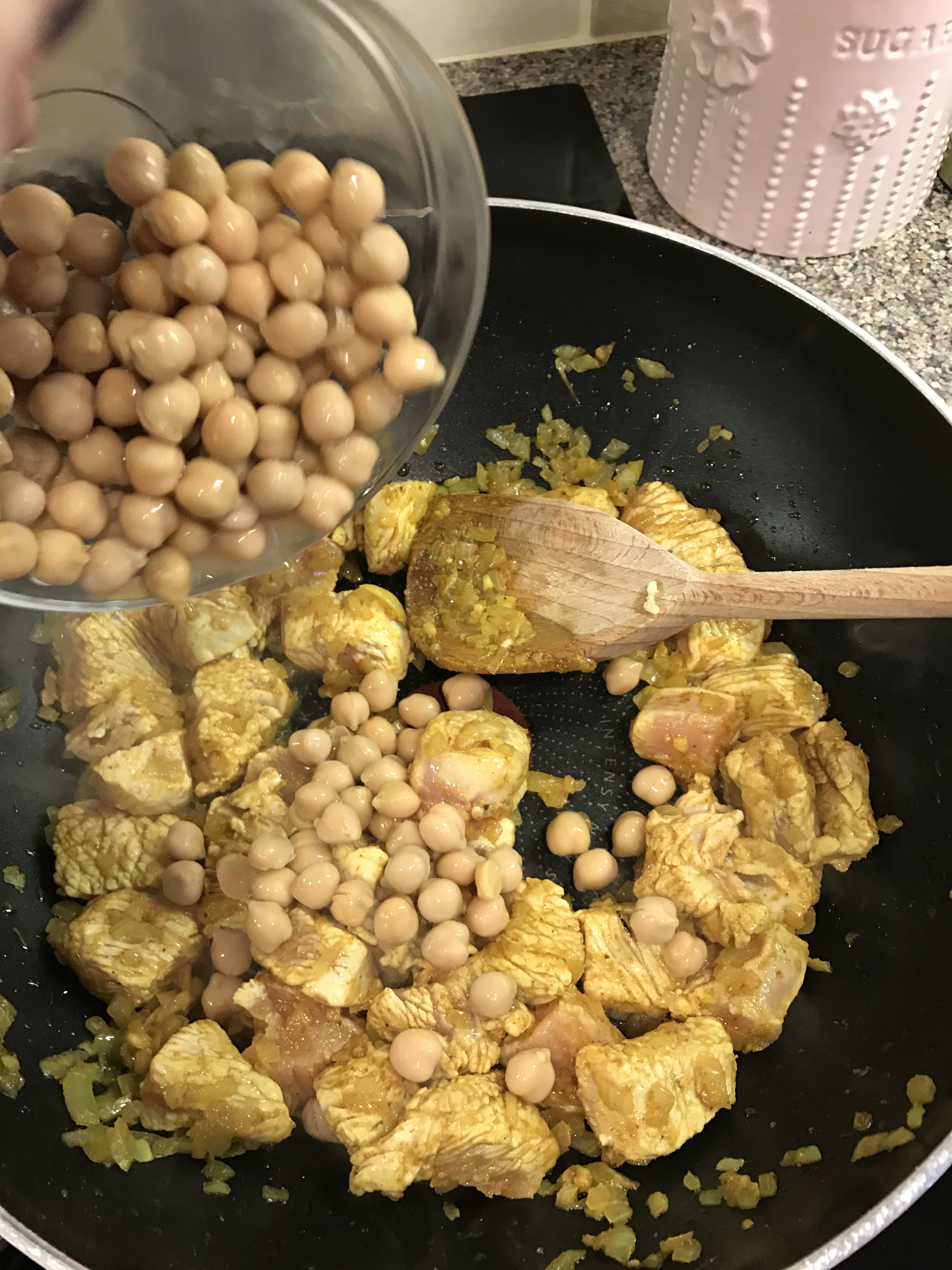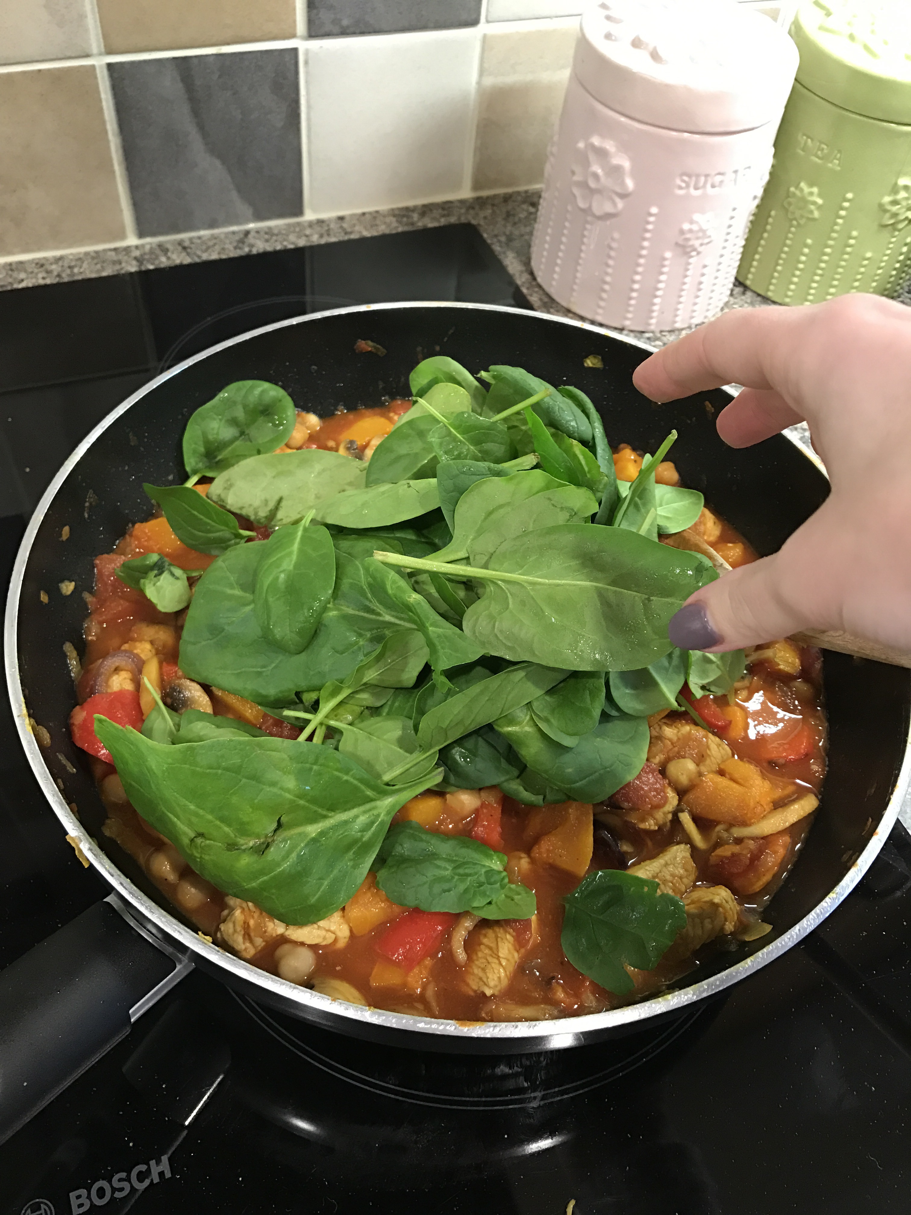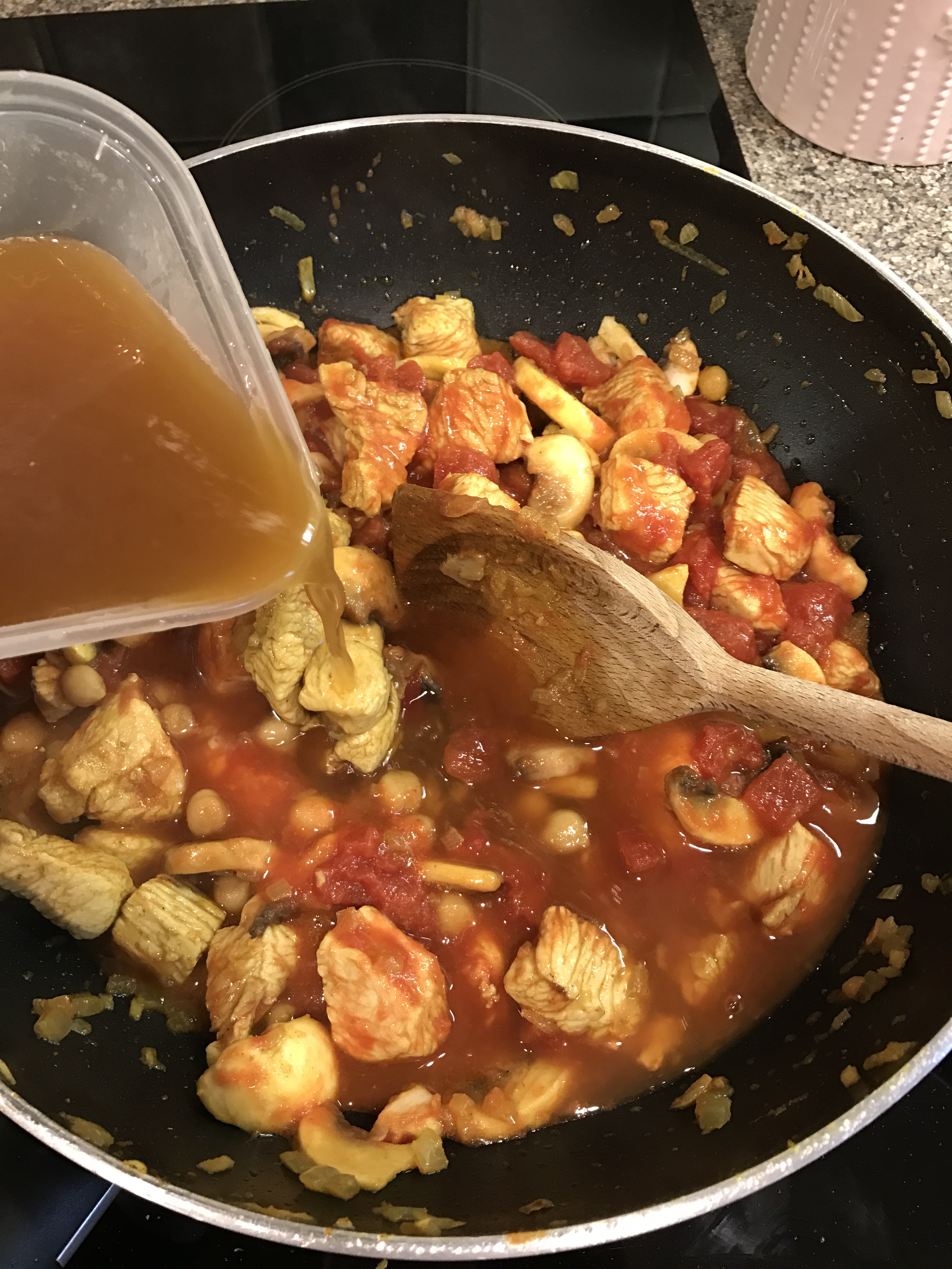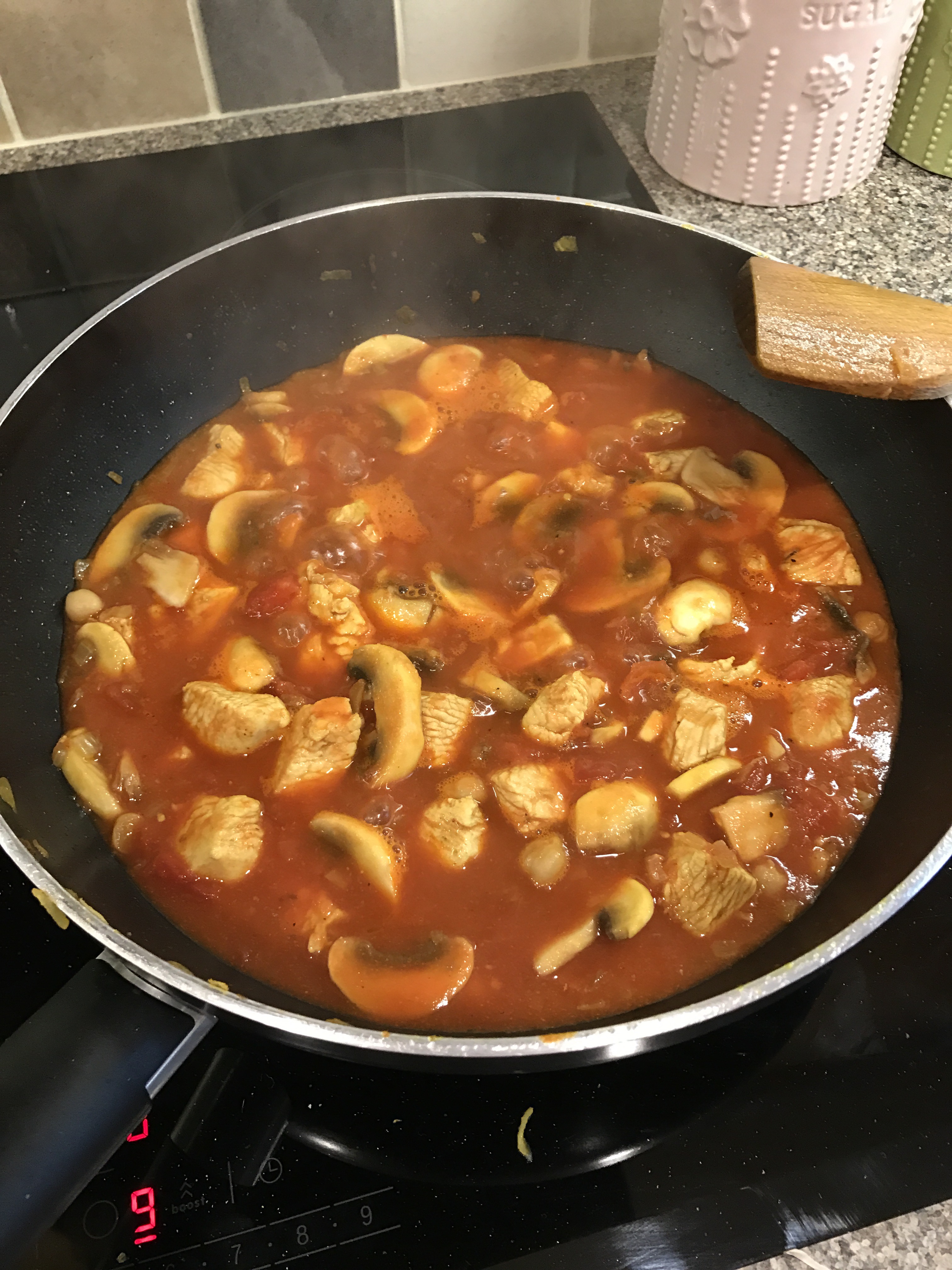 If you’re adding turkey or chicken turn the heat up to high and add this now. Cook for 8-10mins until almost cooked through.