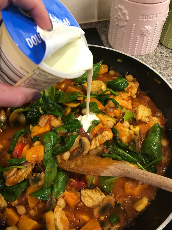 Finally add the cream and if you have some fresh coriander that would be great to add here too!