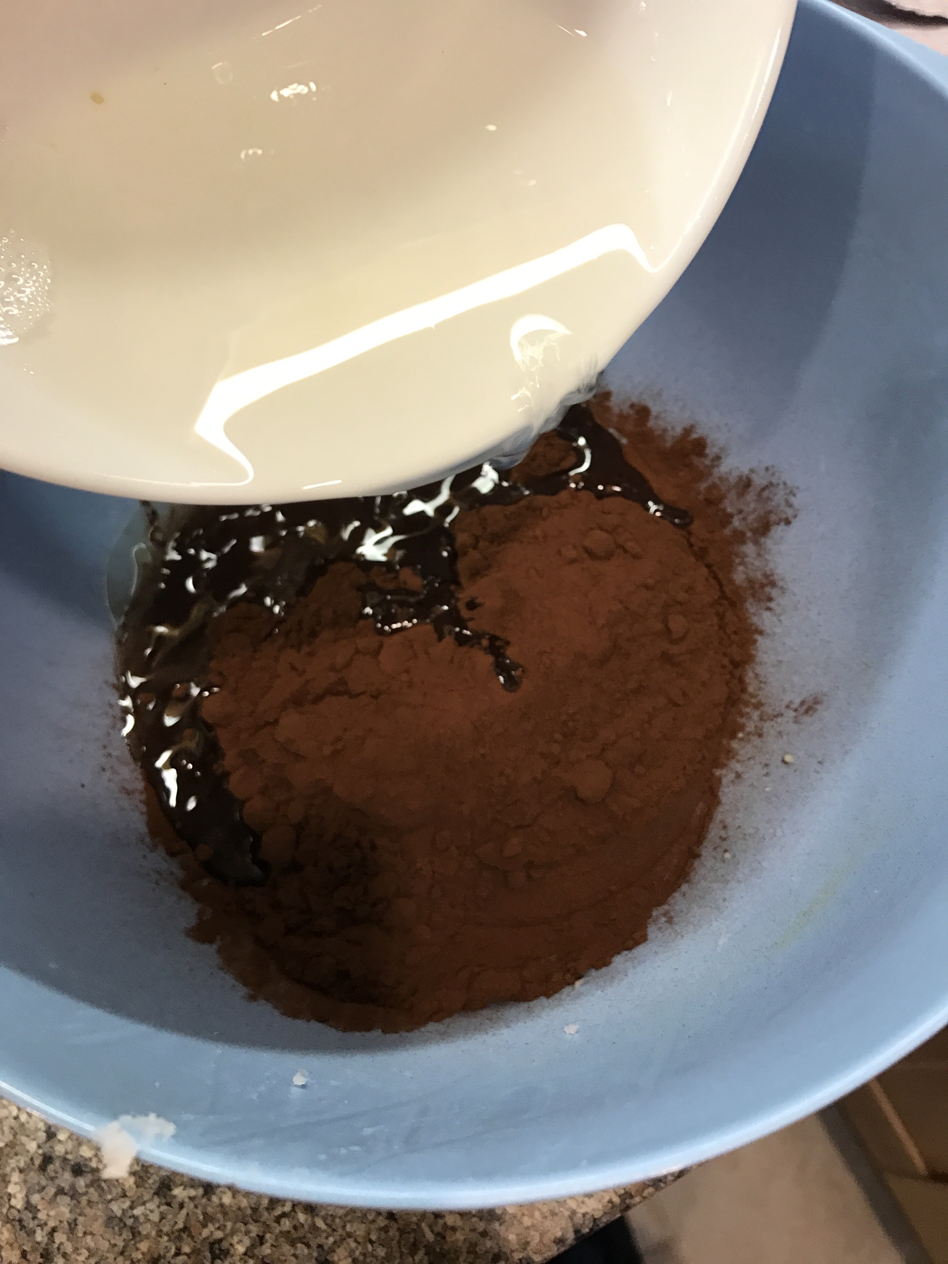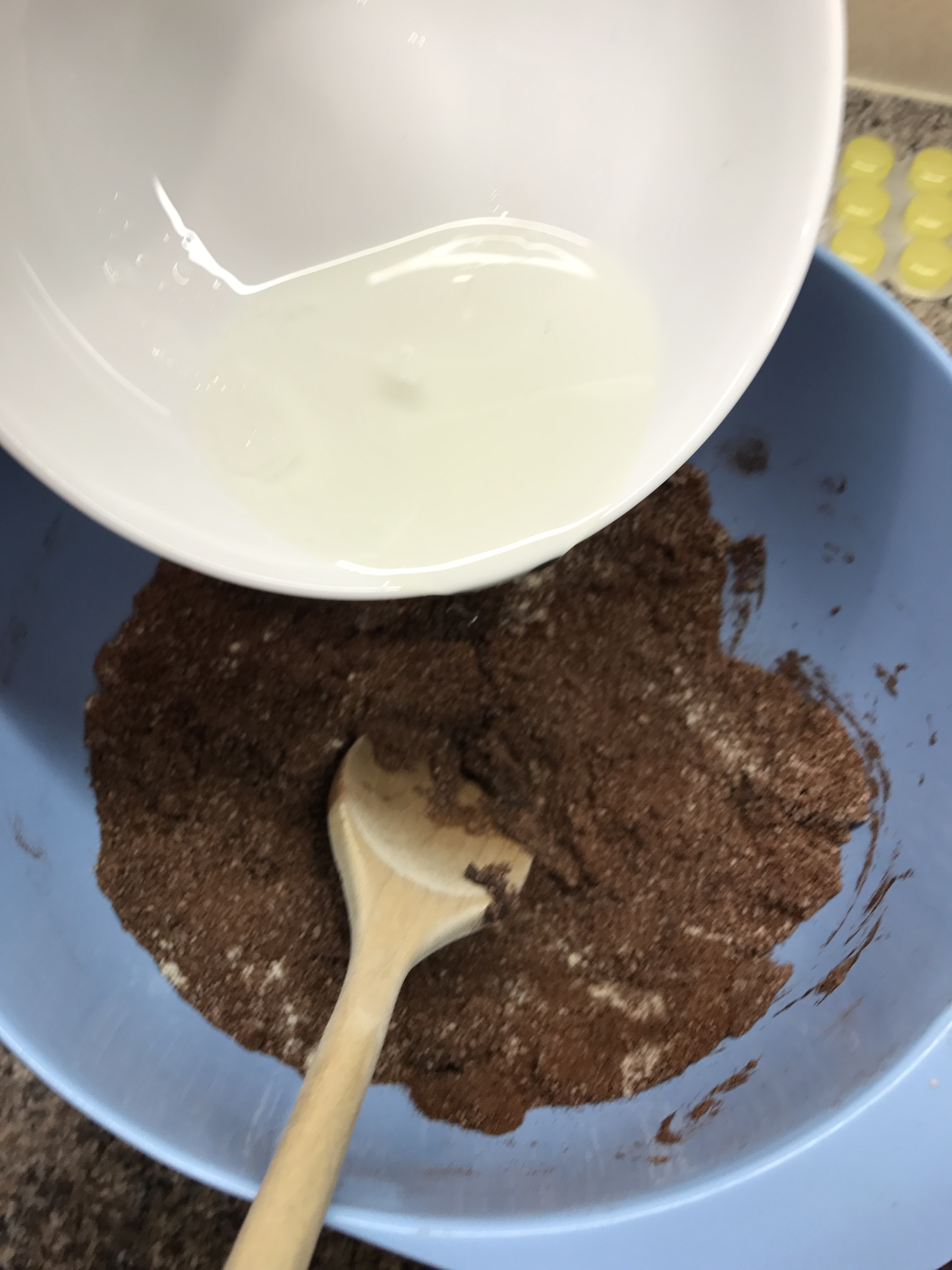 Ok- so for the first layer- in a bowl put all of the ground almonds and 4 tablespoons of cocoa powder and mix together