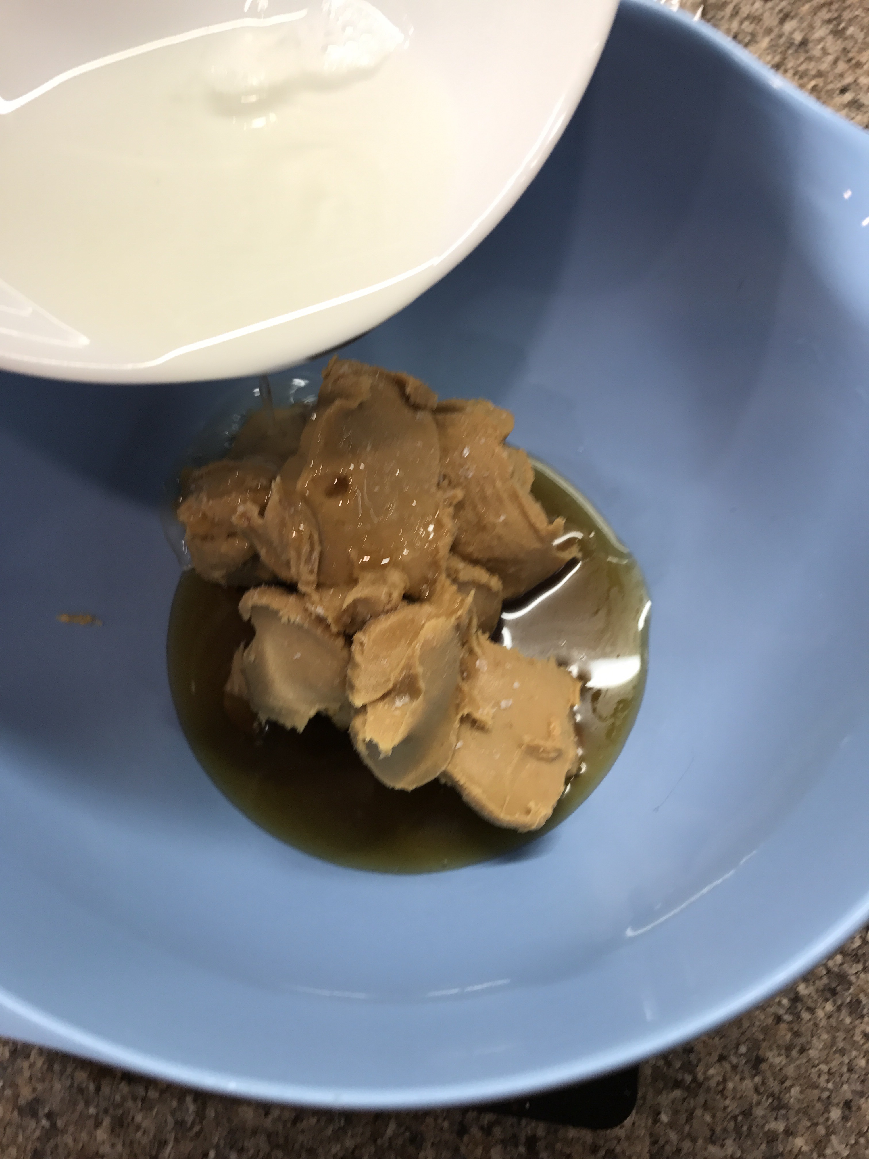 Melt 2 tablespoons of coconut oil in the microwave then add to the bowl with 4 tablespoons of maple syrup. Mix together.