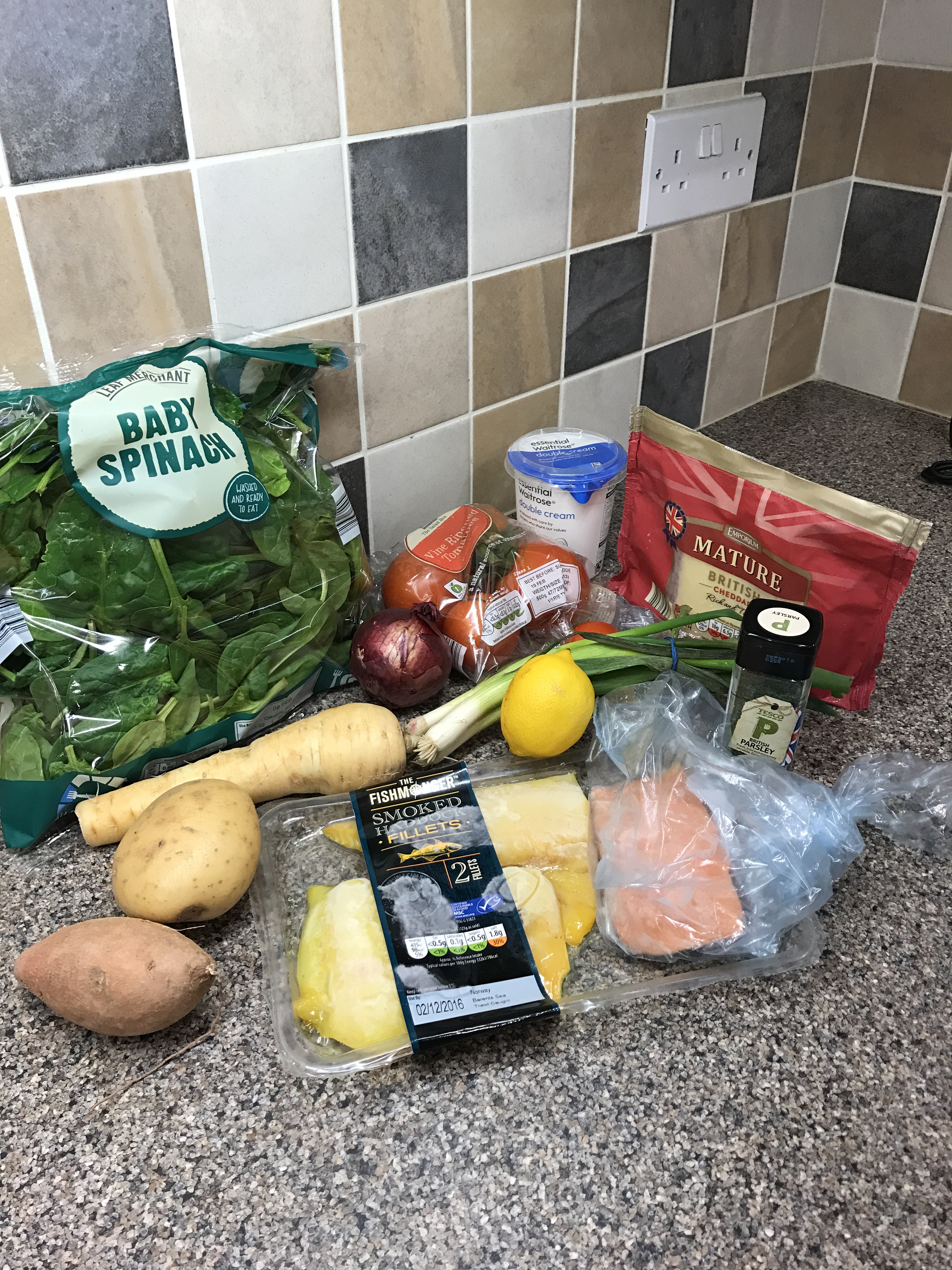 3 haddock fillets (I ended up using 2 haddock and one salmon fillet today as that’s what I had!)