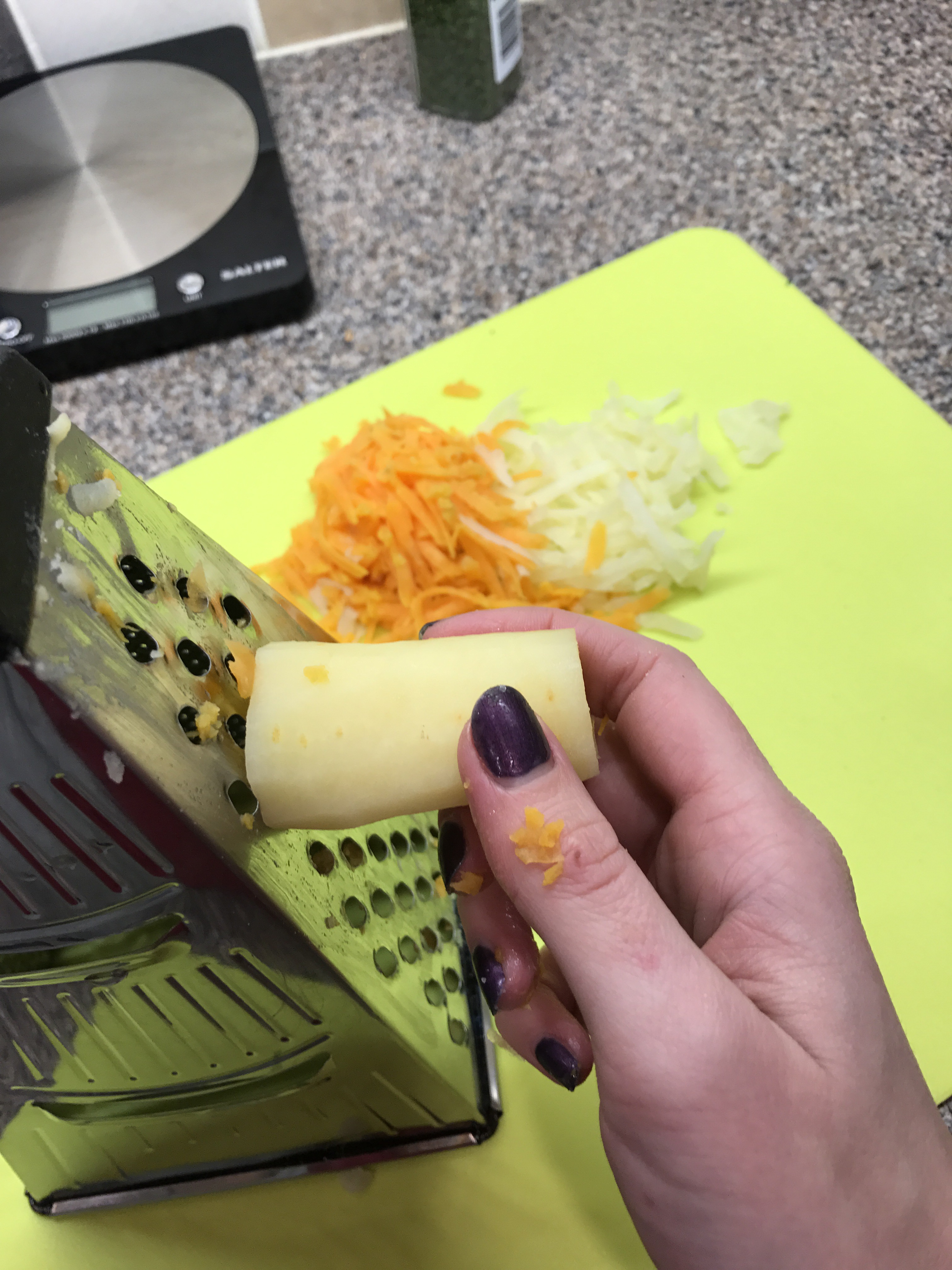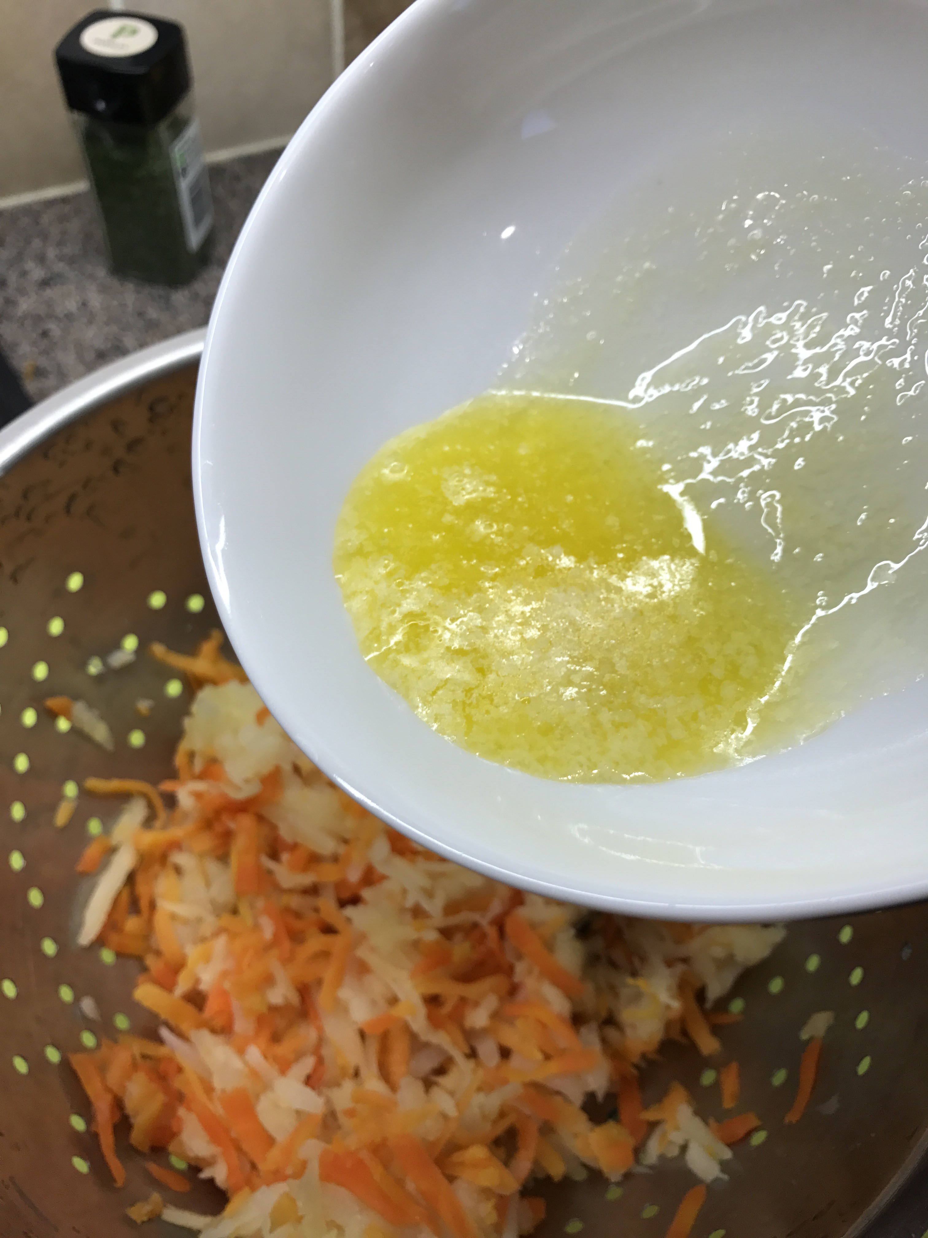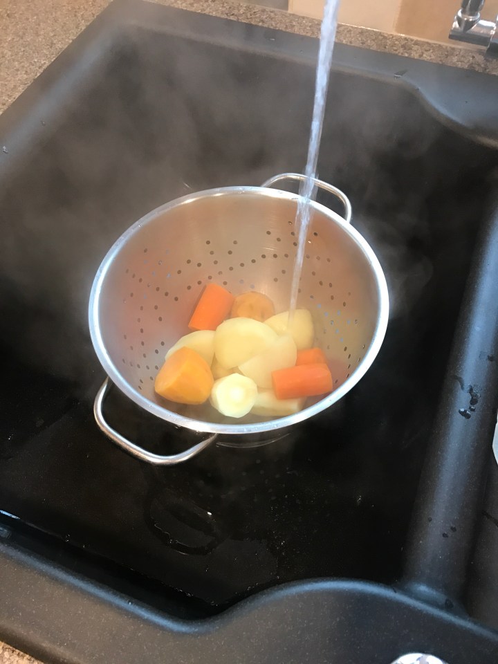 Drain the veg and run cold water over it to stop them cooking any further. Leave to cool.