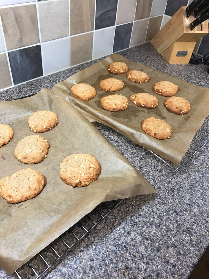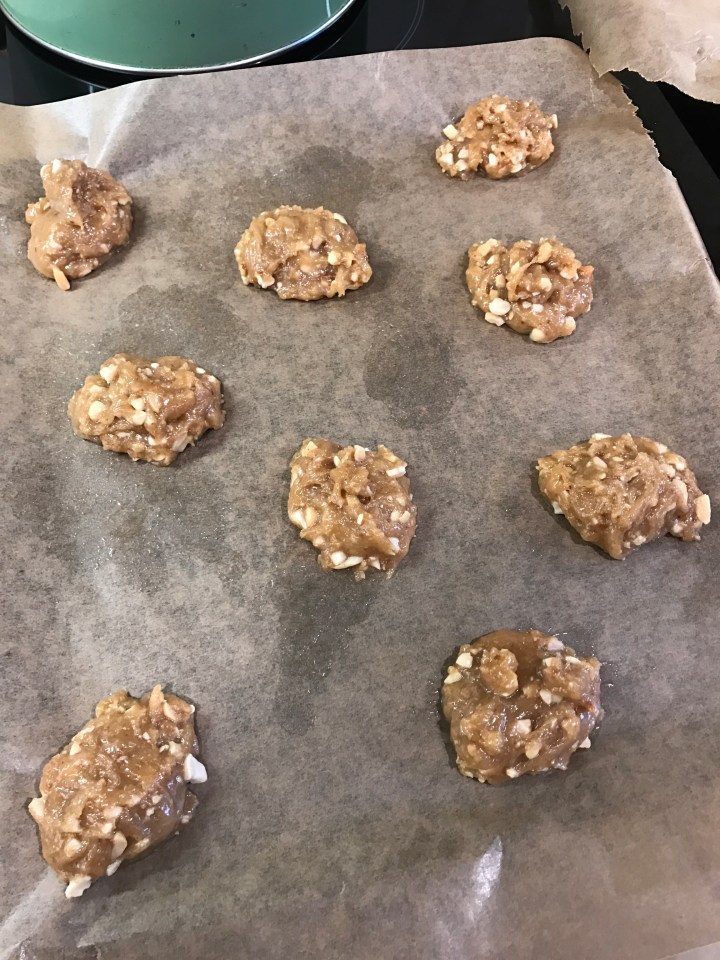 Spoon the mixture onto a baking tray lined with baking paper. You should get around 12 biscuits out of the mixture.