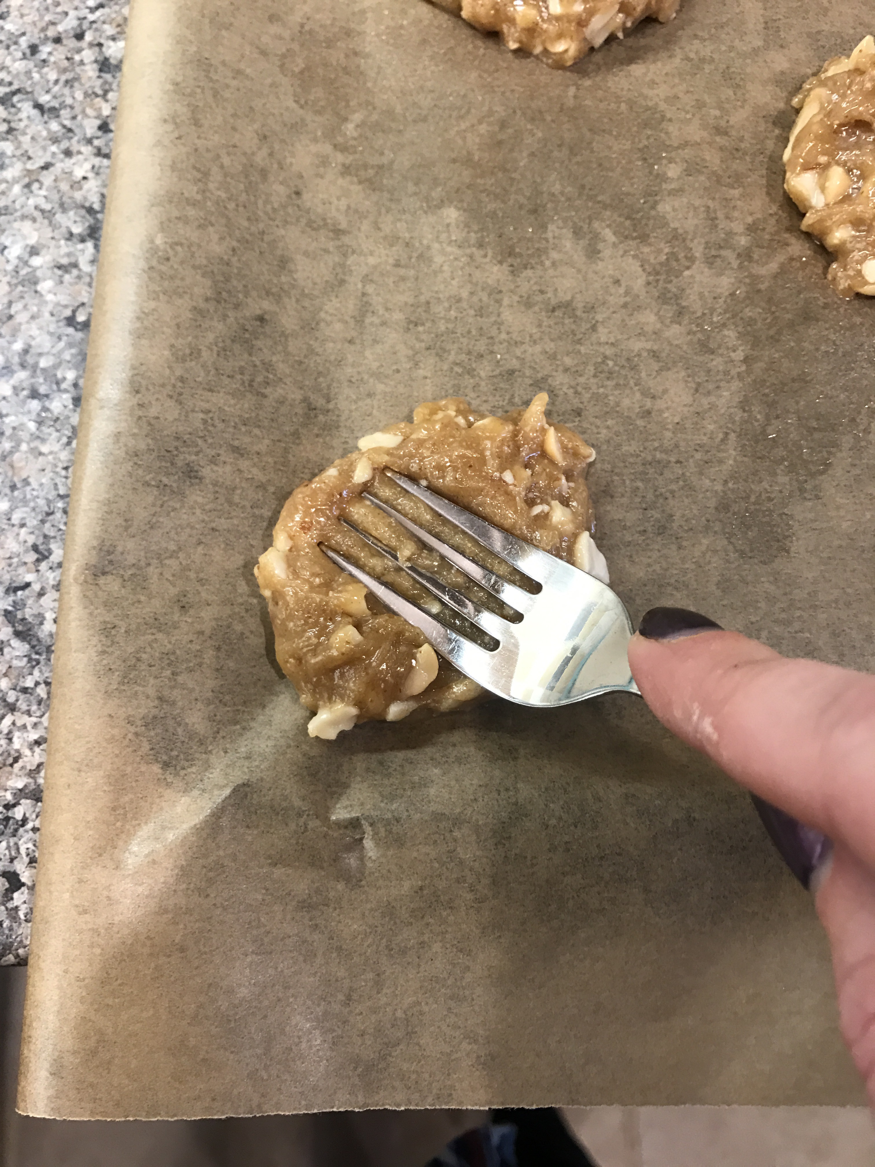 Use a fork to gently squash the balls of mixture into a more biscuit like shape