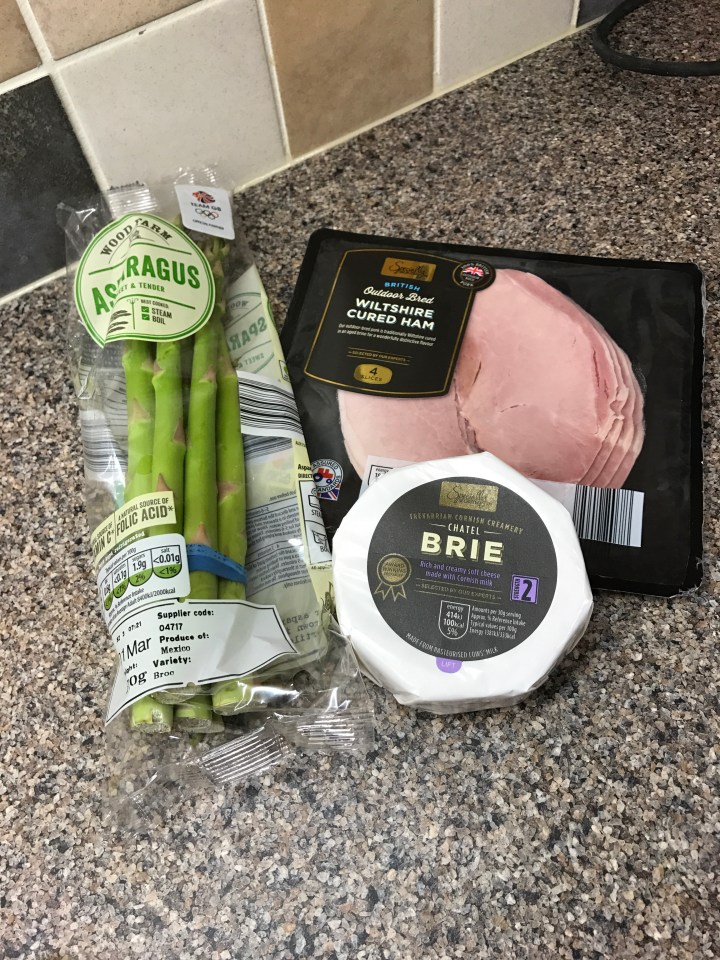 Roll up and pop into the oven. If you want the Brie to melt turn the oven up and cook for 10mins at 180 degrees.