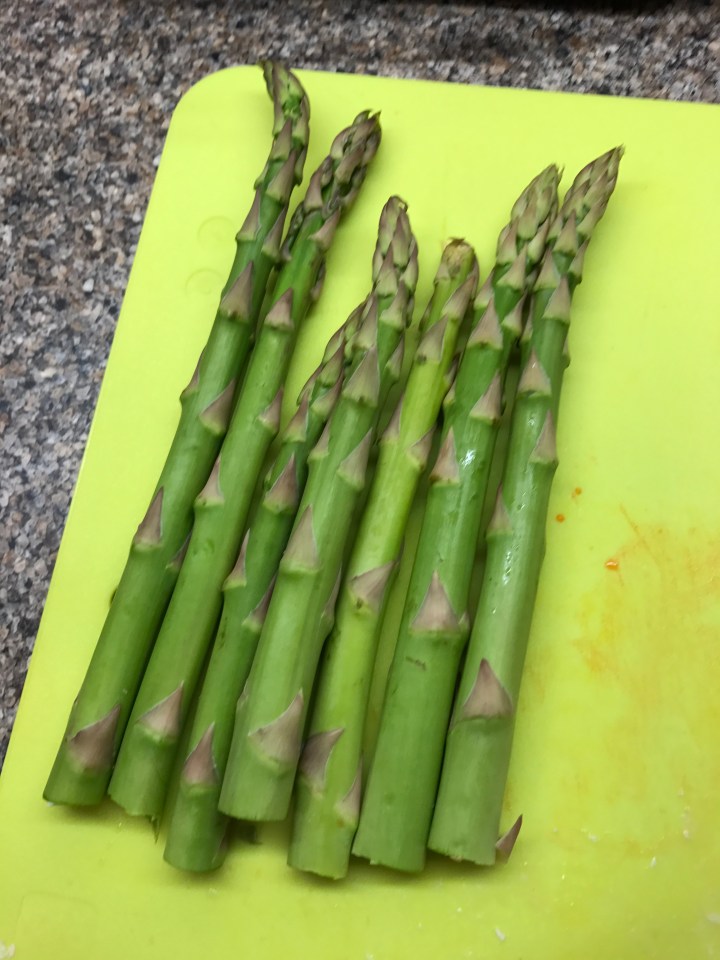 Cut the woody ends off the asparagus