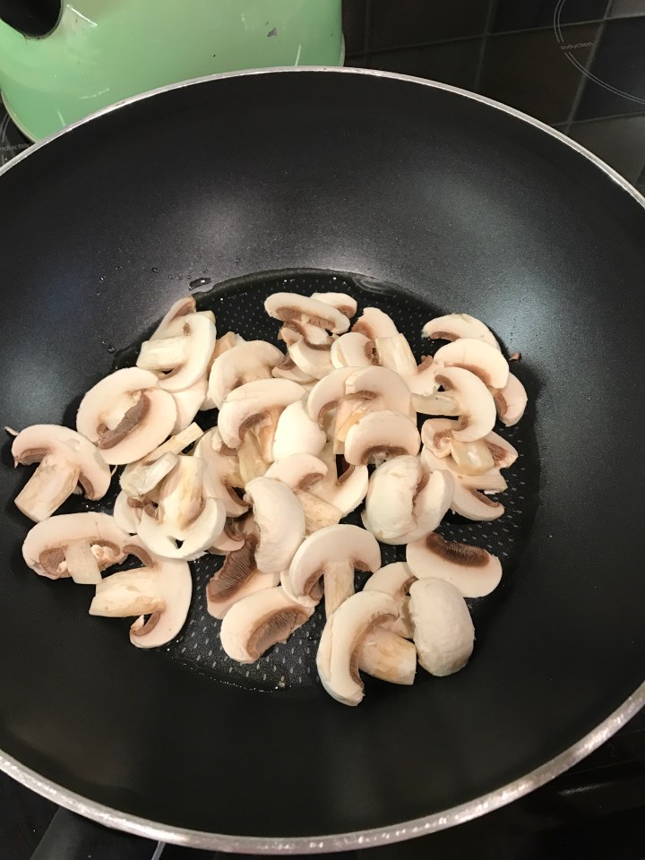 Heat a little oil in the pan and cook the mushrooms until soft