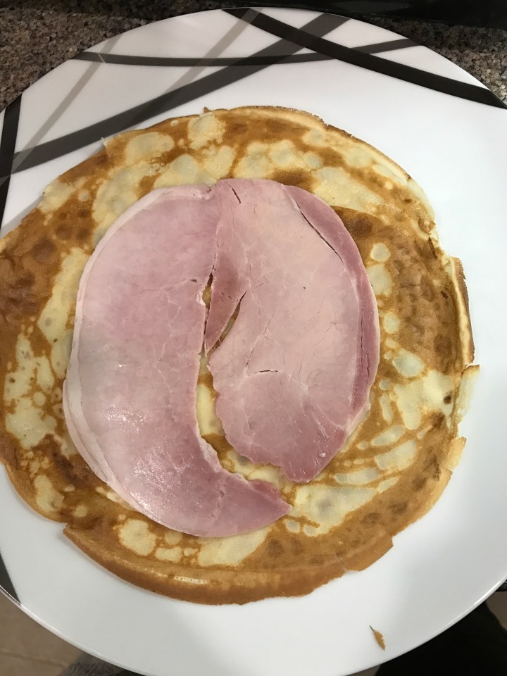 Put a slice of ham on the pancake