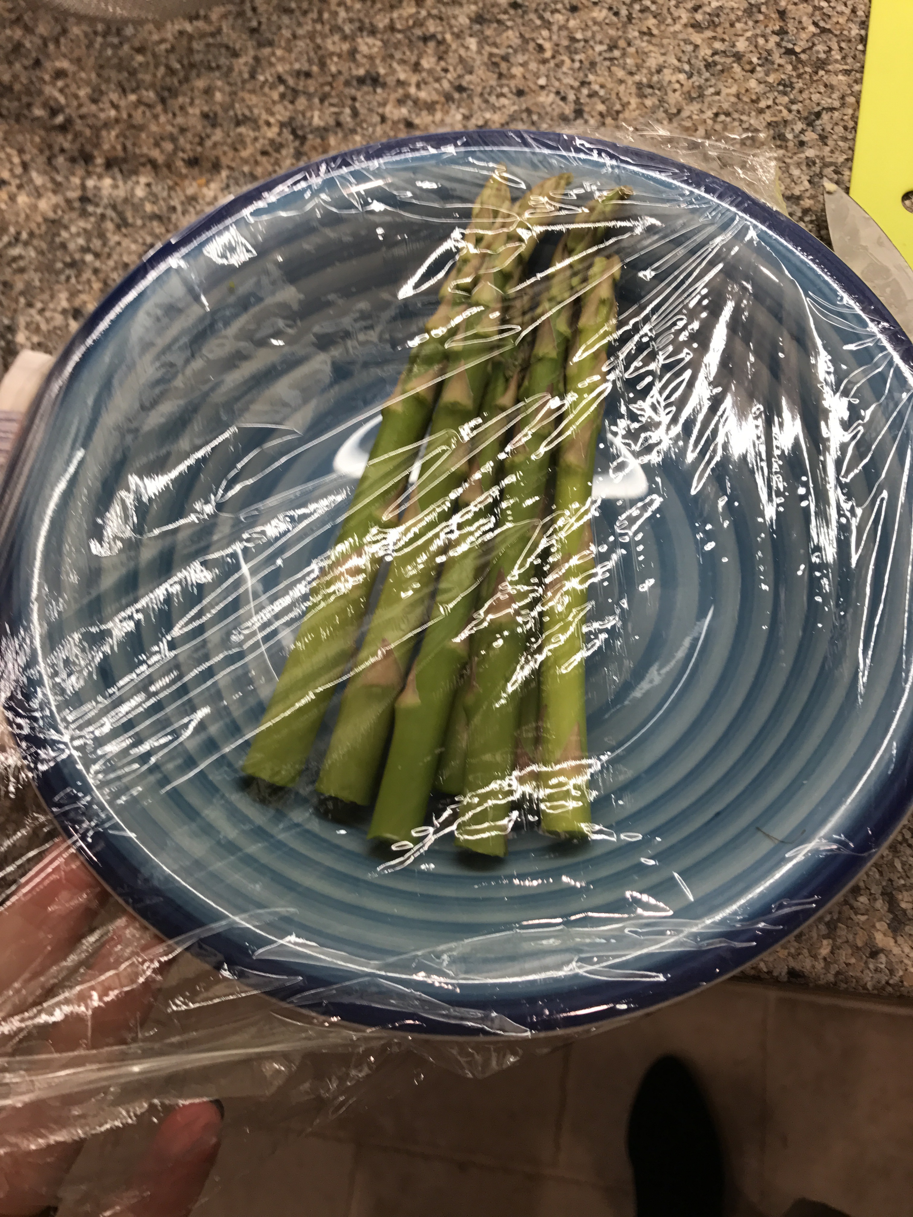 Cut the woody ends off the asparagus