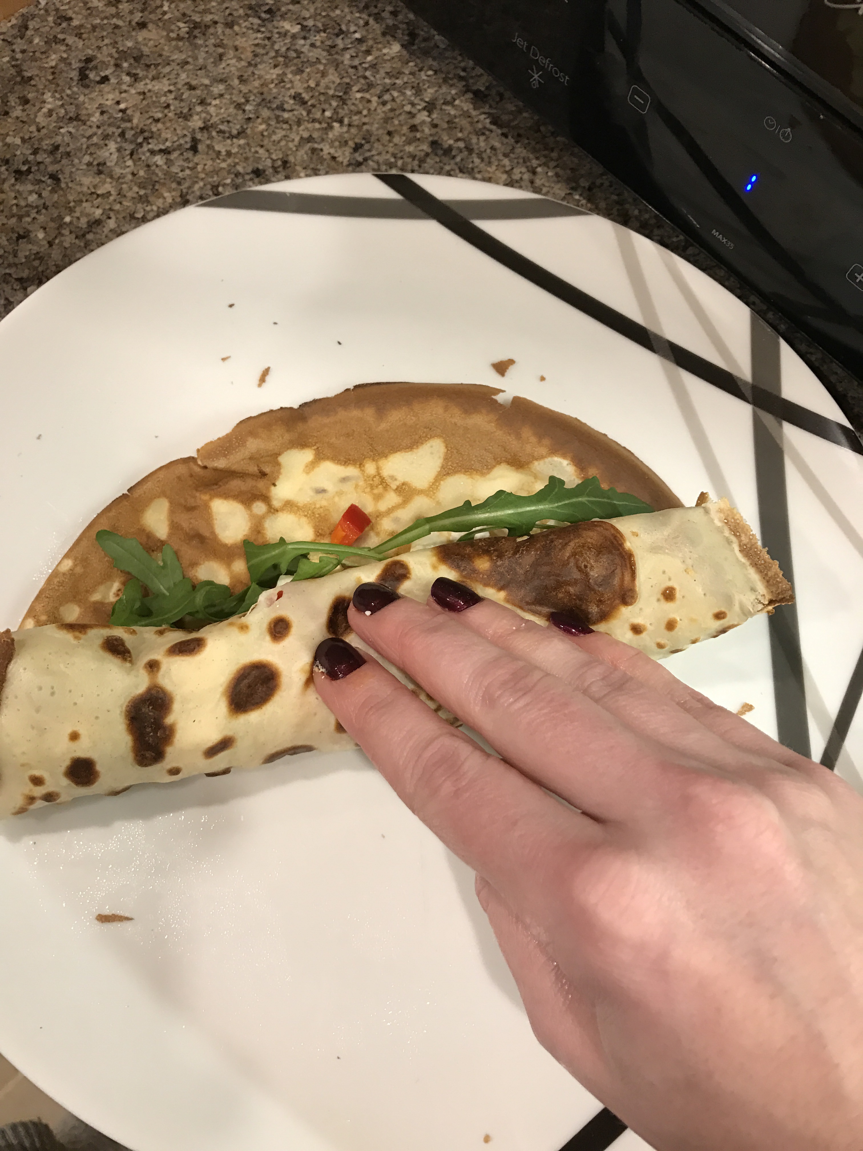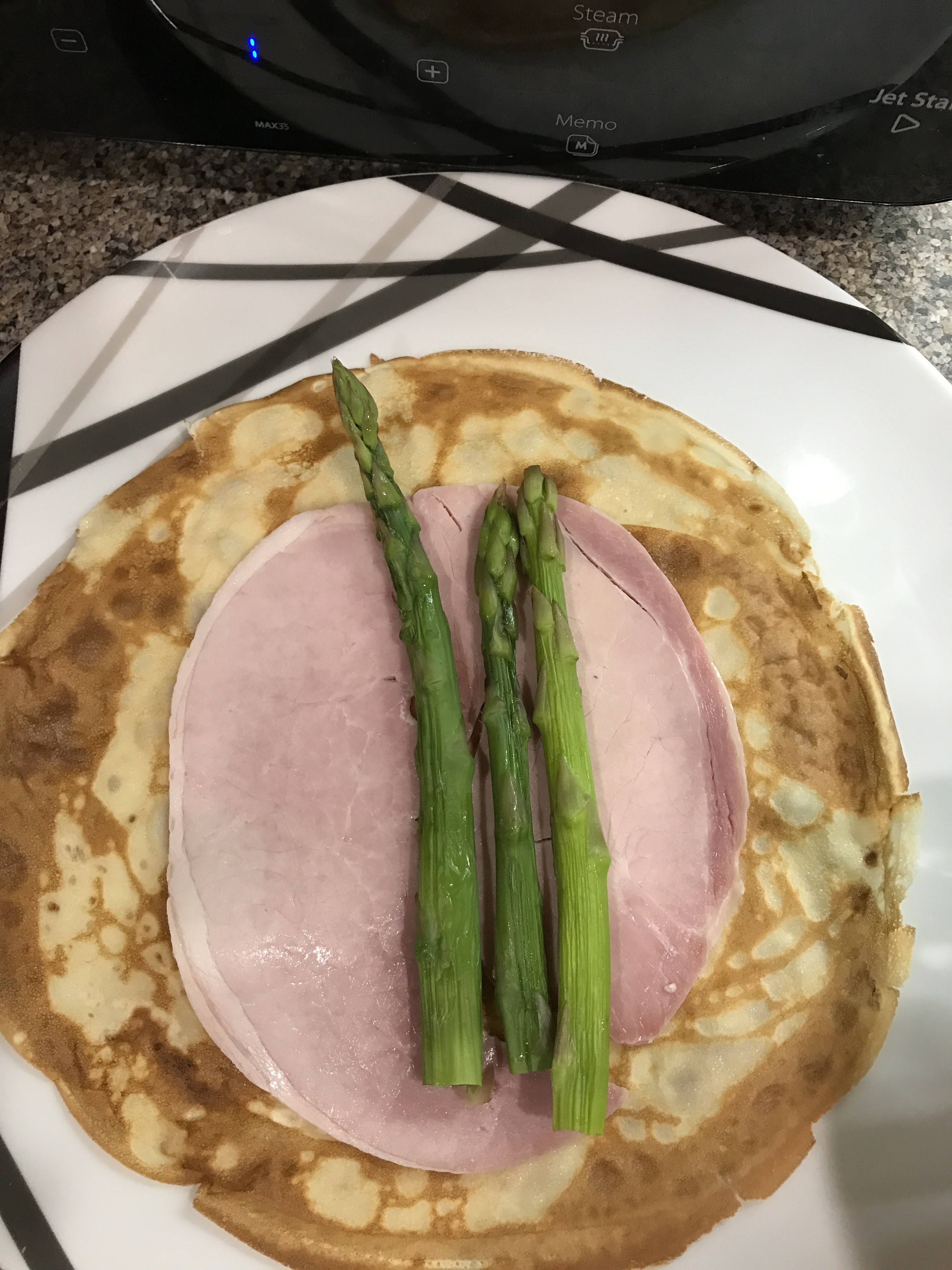 Now- I couldn’t decide on just one filling so I’ve done 3! Red pepper, feta and rocket. Mushroom, spinach and Gorgonzola. Asparagus, ham and Brie.