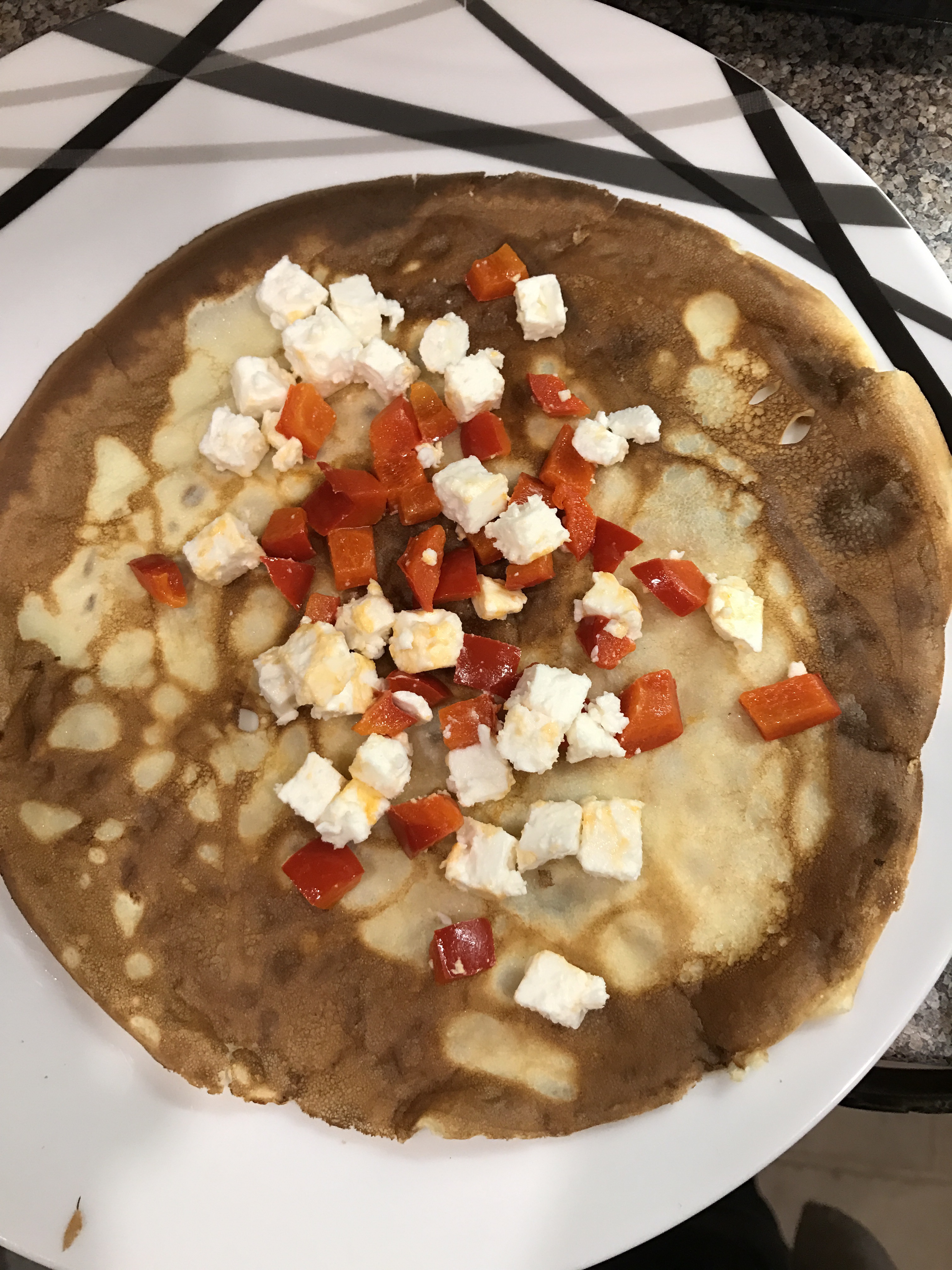 Spoon on the peppers and feta onto a pancake