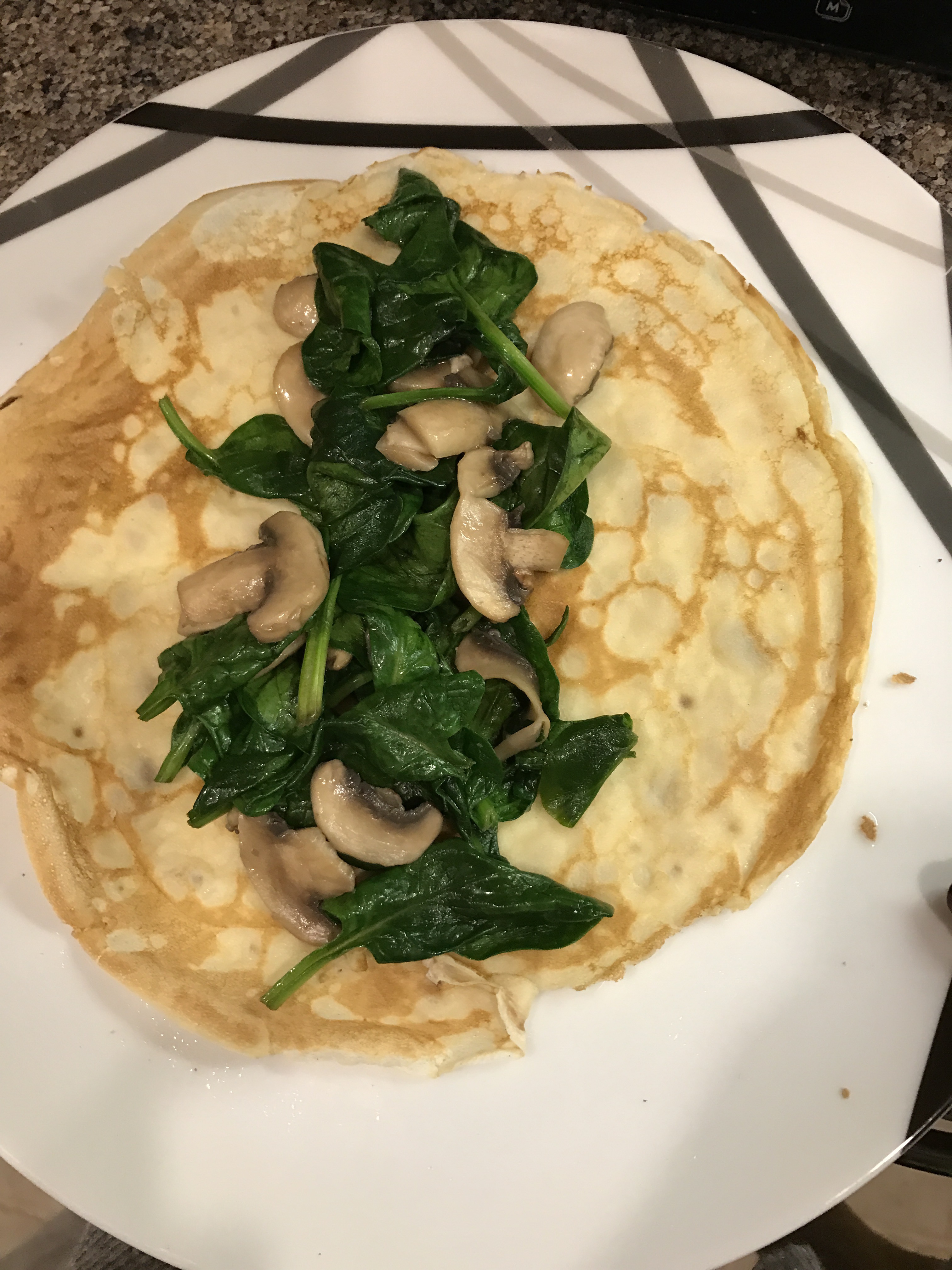 Spoon the mushrooms and spinach into a pancake