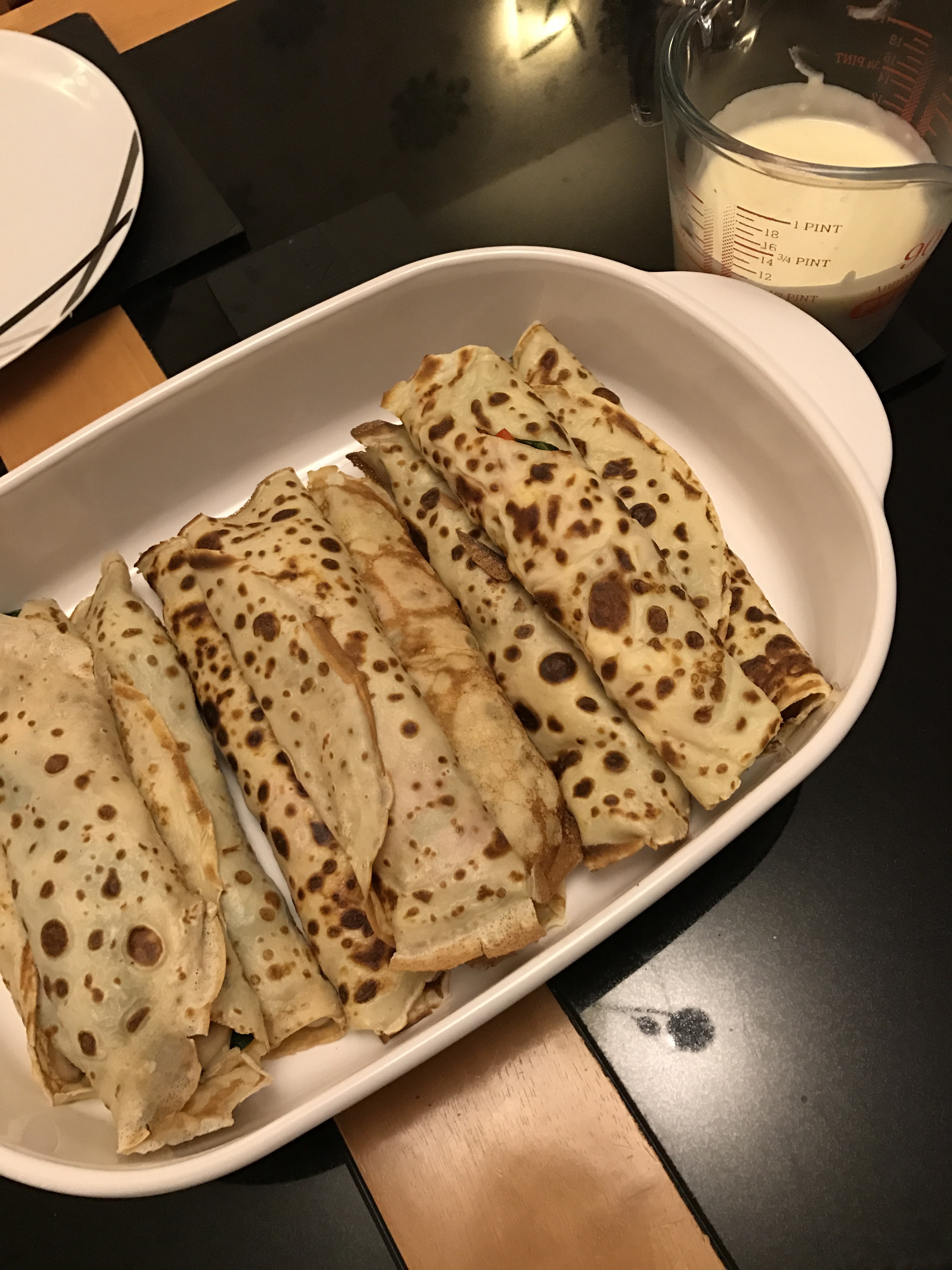Serve your savoury pancakes with a bechemal or cheese sauce!