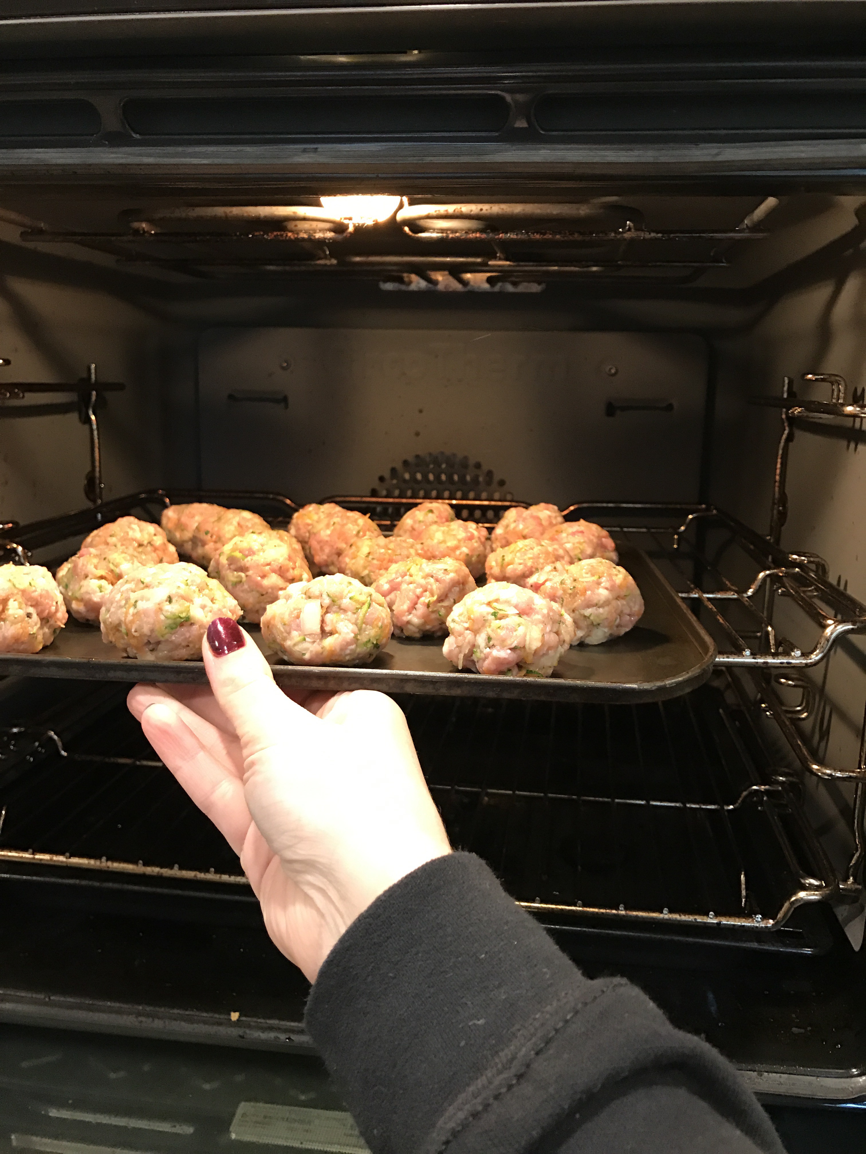 Pop the meatballs into a preheated oven at 180 degrees for 20-25mins