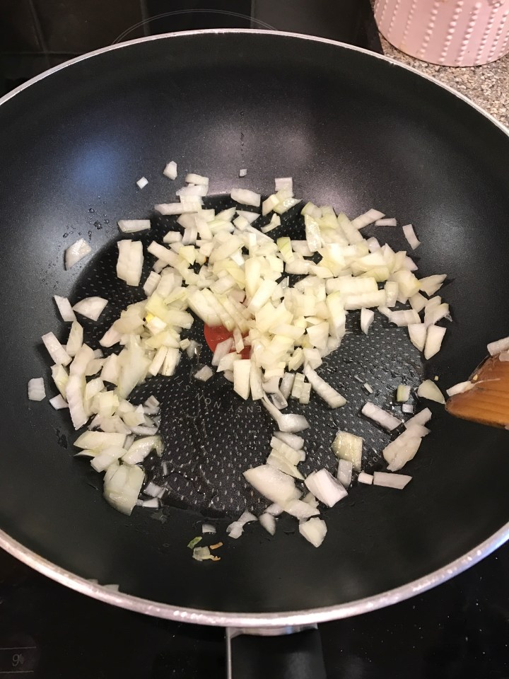 Heat a little olive oil in a pan and add the onions. Cook on a medium heat for 5mins