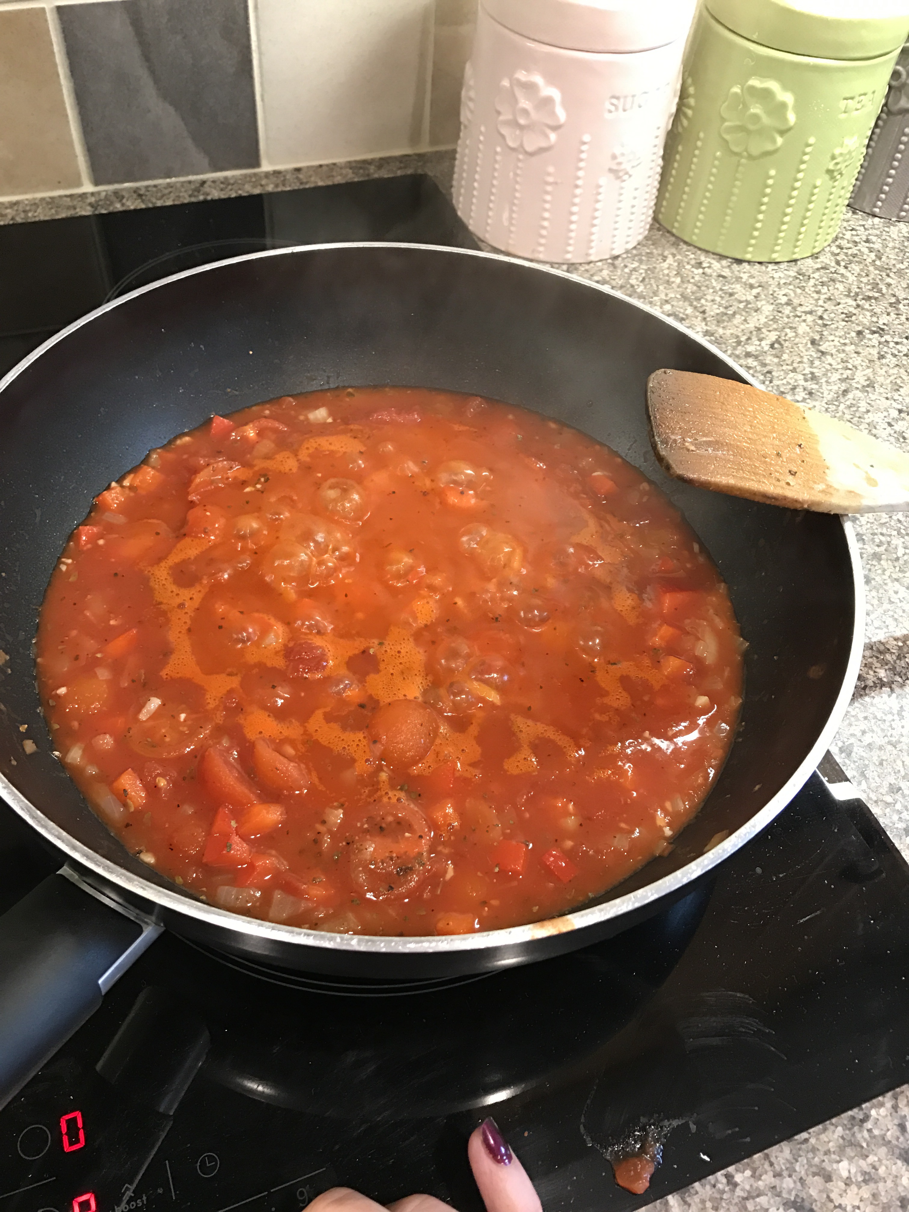 Bring to the boil then let it simmer away while the meatballs are cooking
