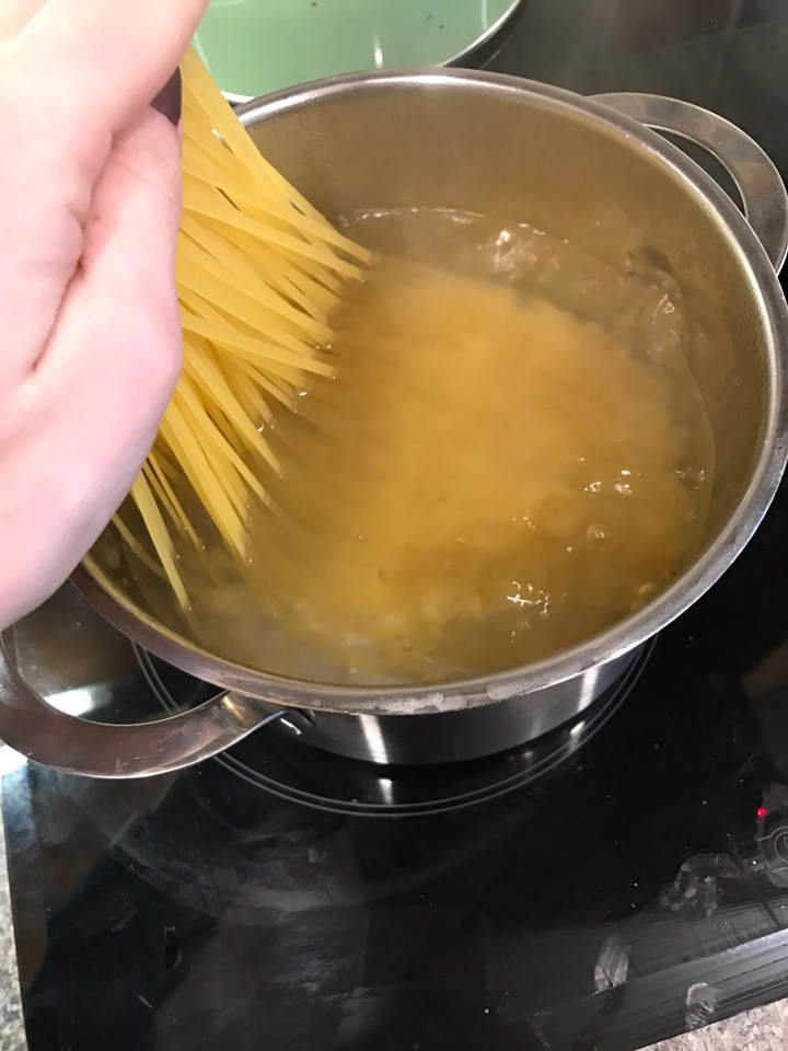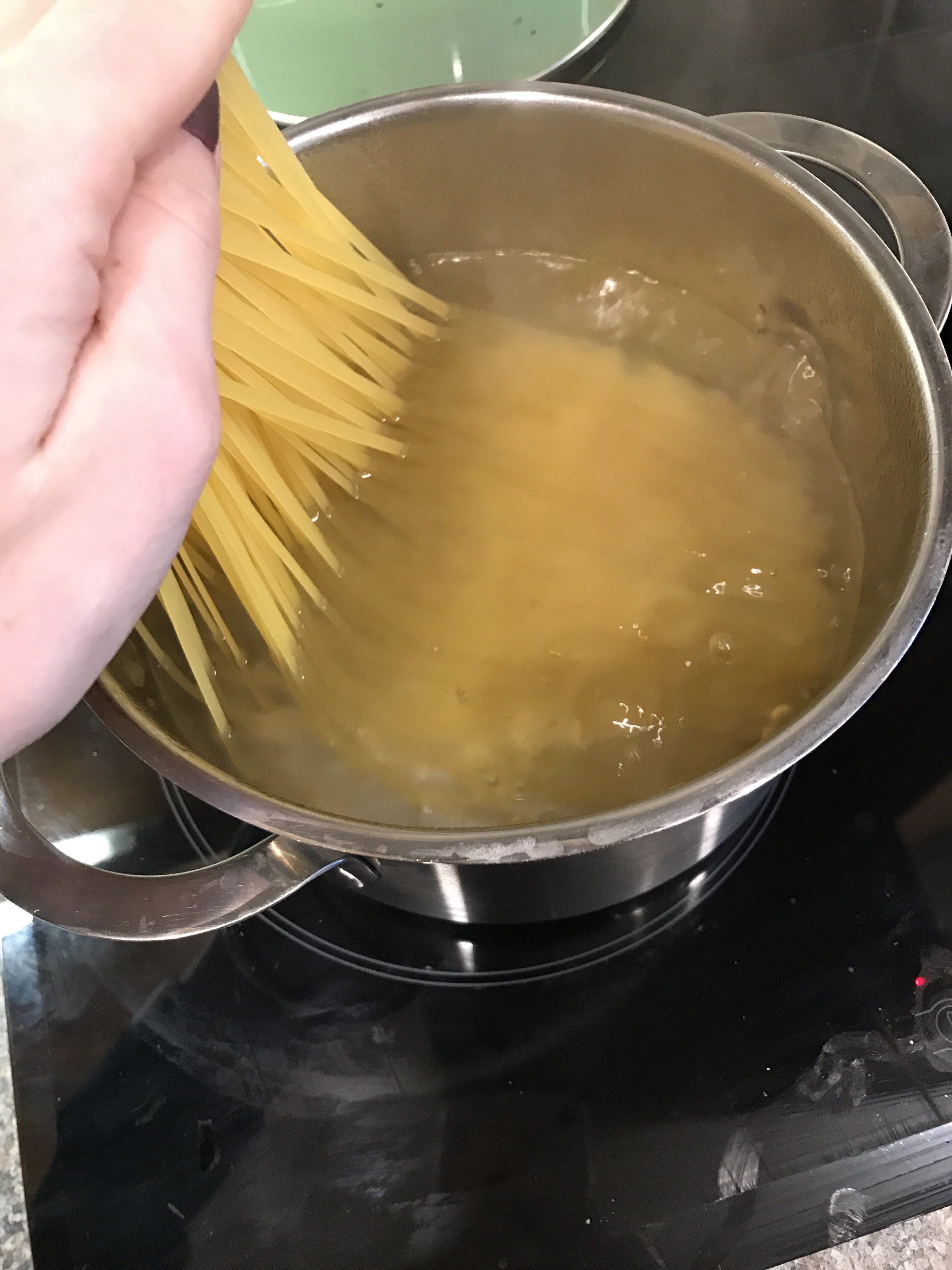 Cook around 200g of linguine for around 2mins less than the packet suggests