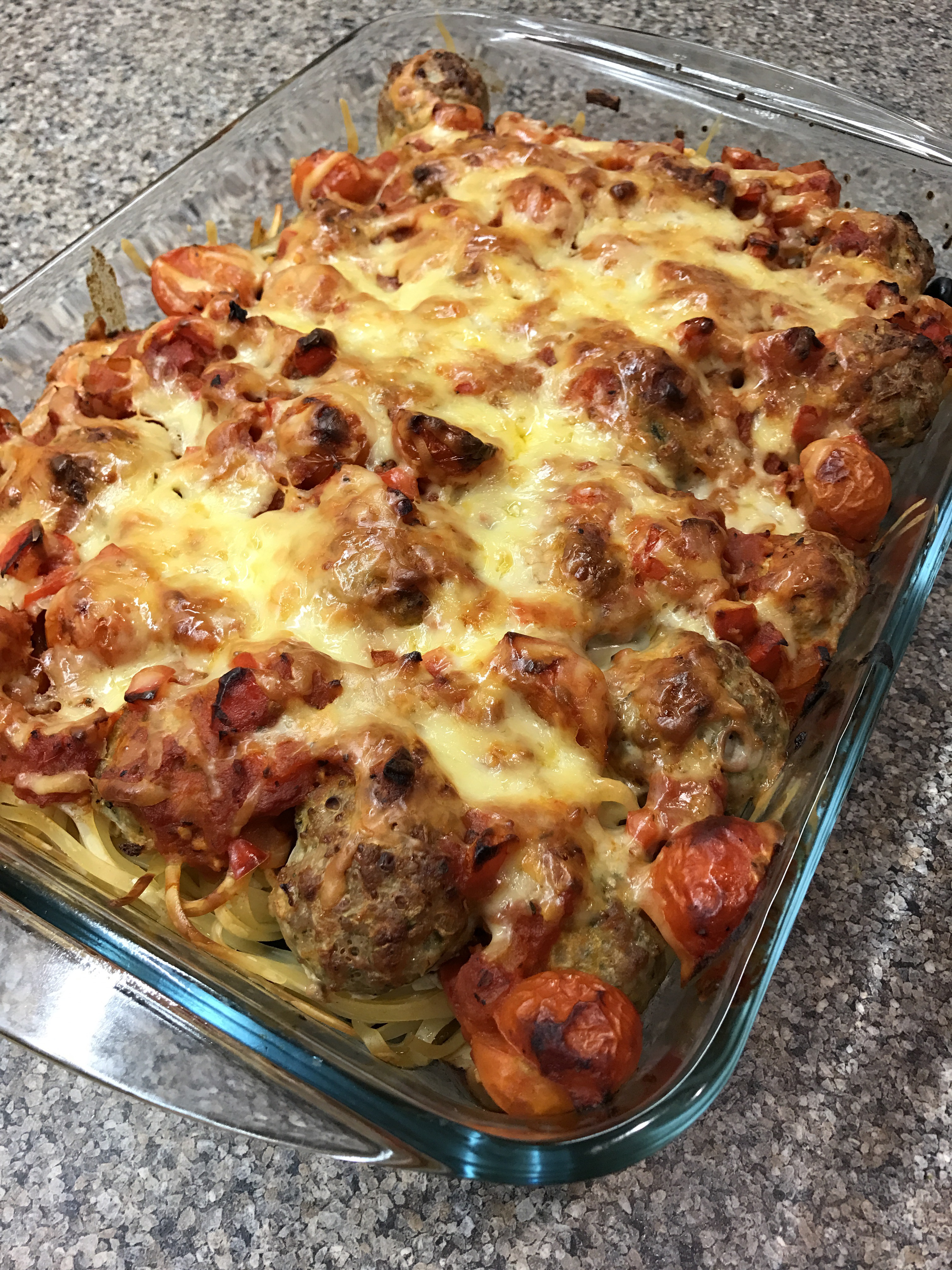 Meatballs are a great opportunity to add a little extra unseen veg into a meal. This bake is full of extra veg in both the meatballs and the sauce and the kids can’t get enough of it!