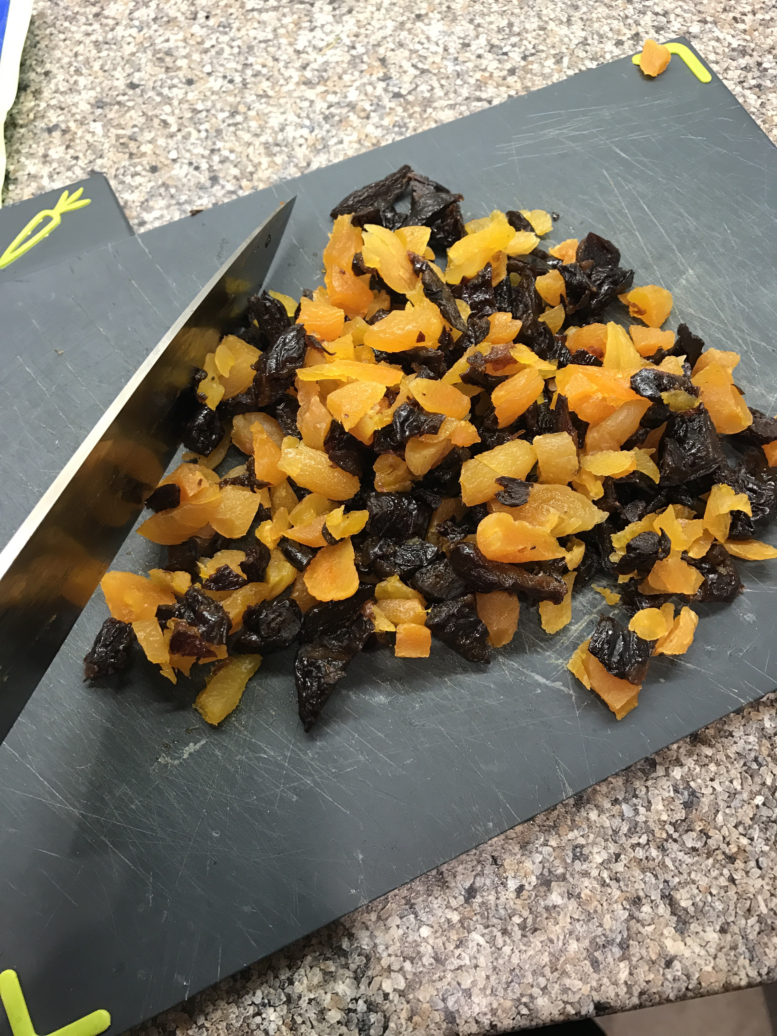 Chop the larger dried fruits (prunes and apricots) into small pieces