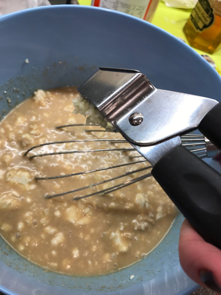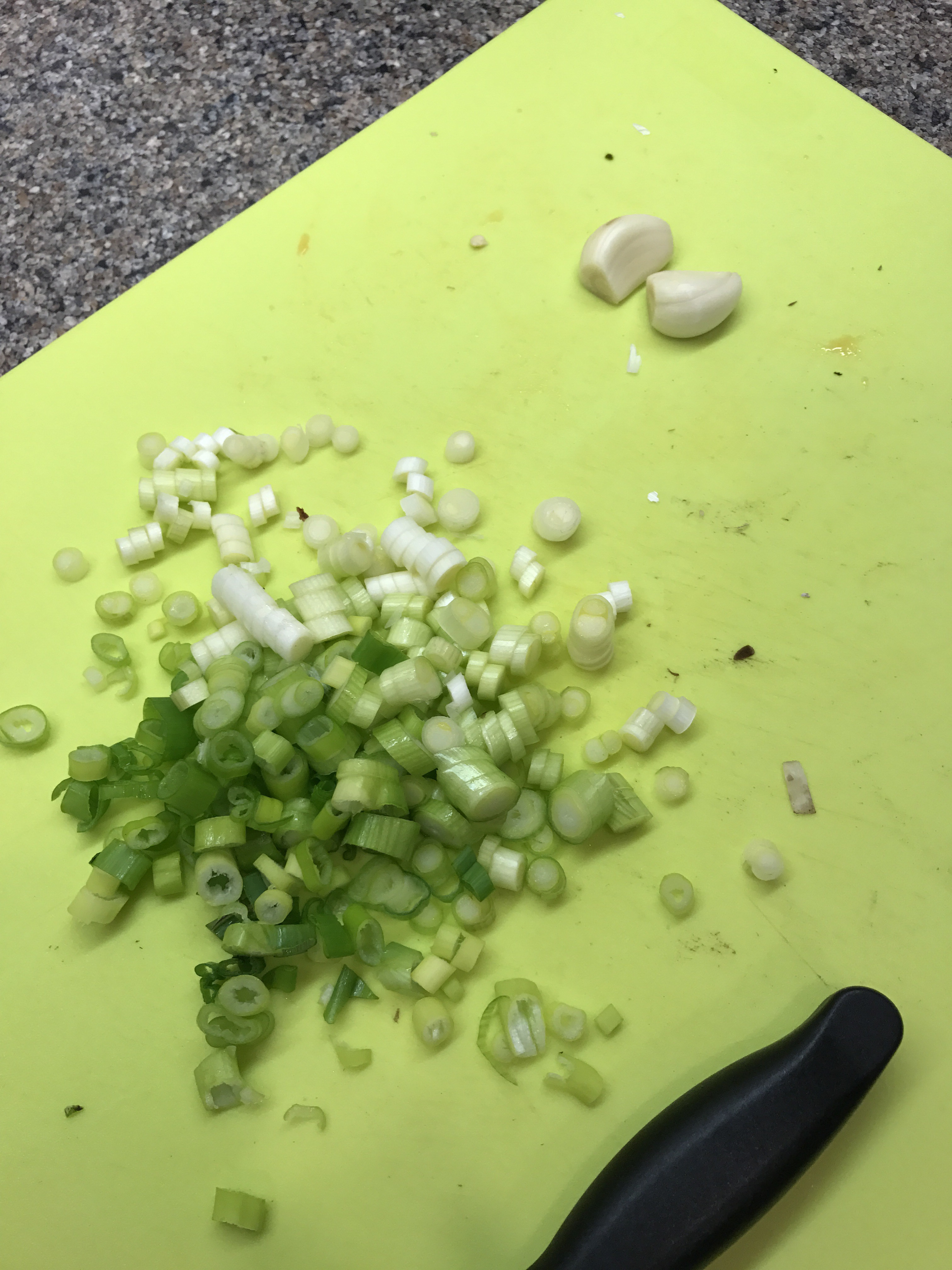 Peel the garlic and chop the spring onions (put those aside until ready to serve)