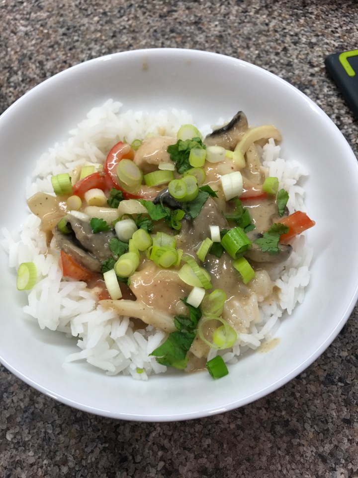 Serve with rice and chopped coriander and spring onions on top. Yummy!