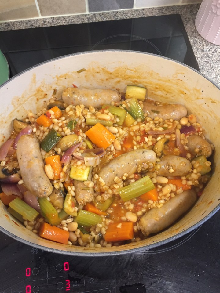 Dinner- Sausage & barley casserole (9) and Melon (10!)