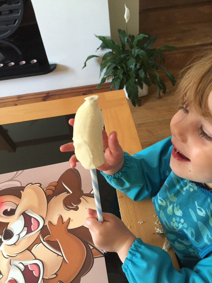 Lunch- Roast lamb, roast potatoes, roast parsnips, broccoli, cauliflower and carrots (7) and banana ice lolly (8)