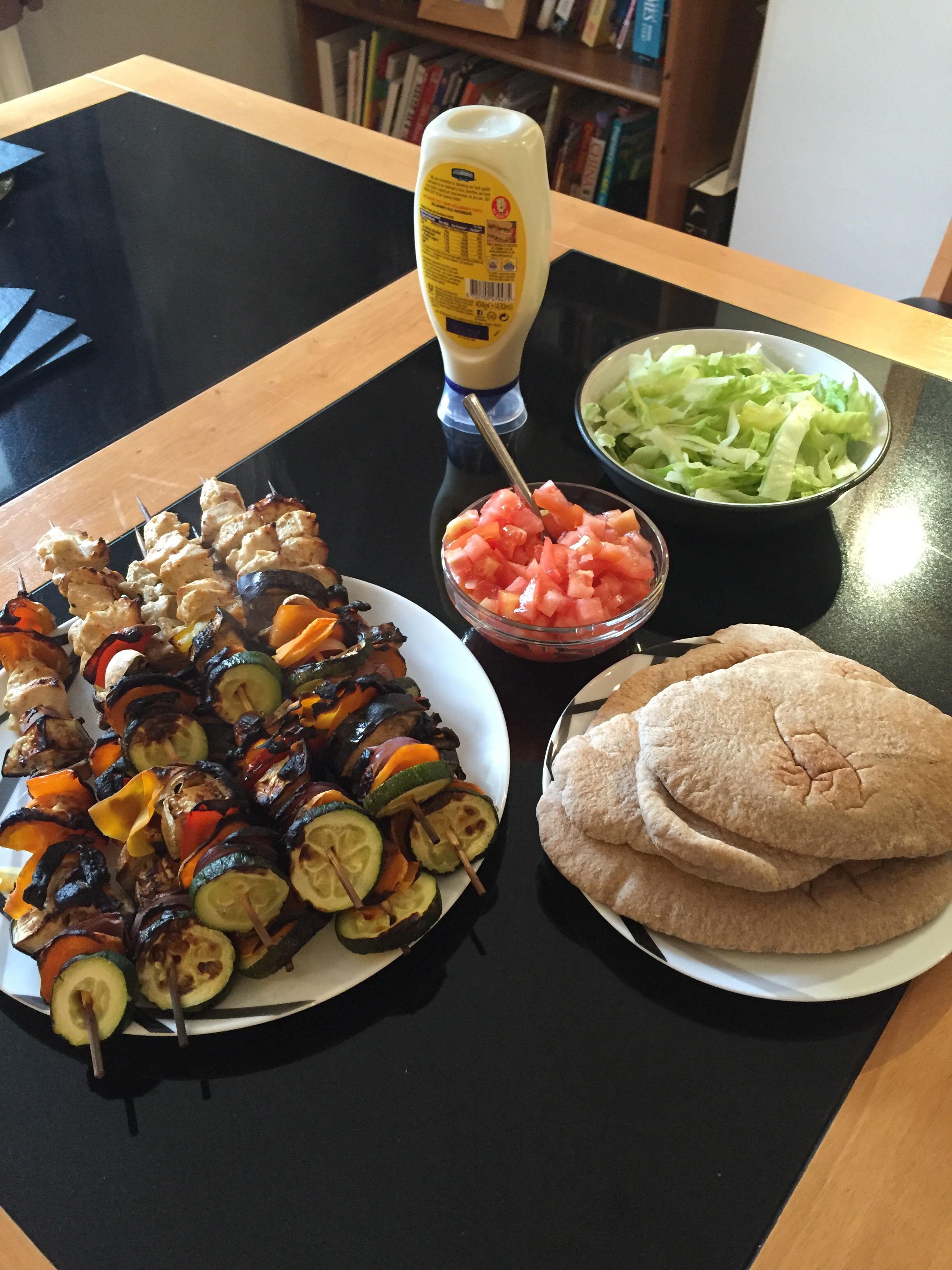 Dinner- Chicken & vegetable kebabs (9) and frozen mango (10!)