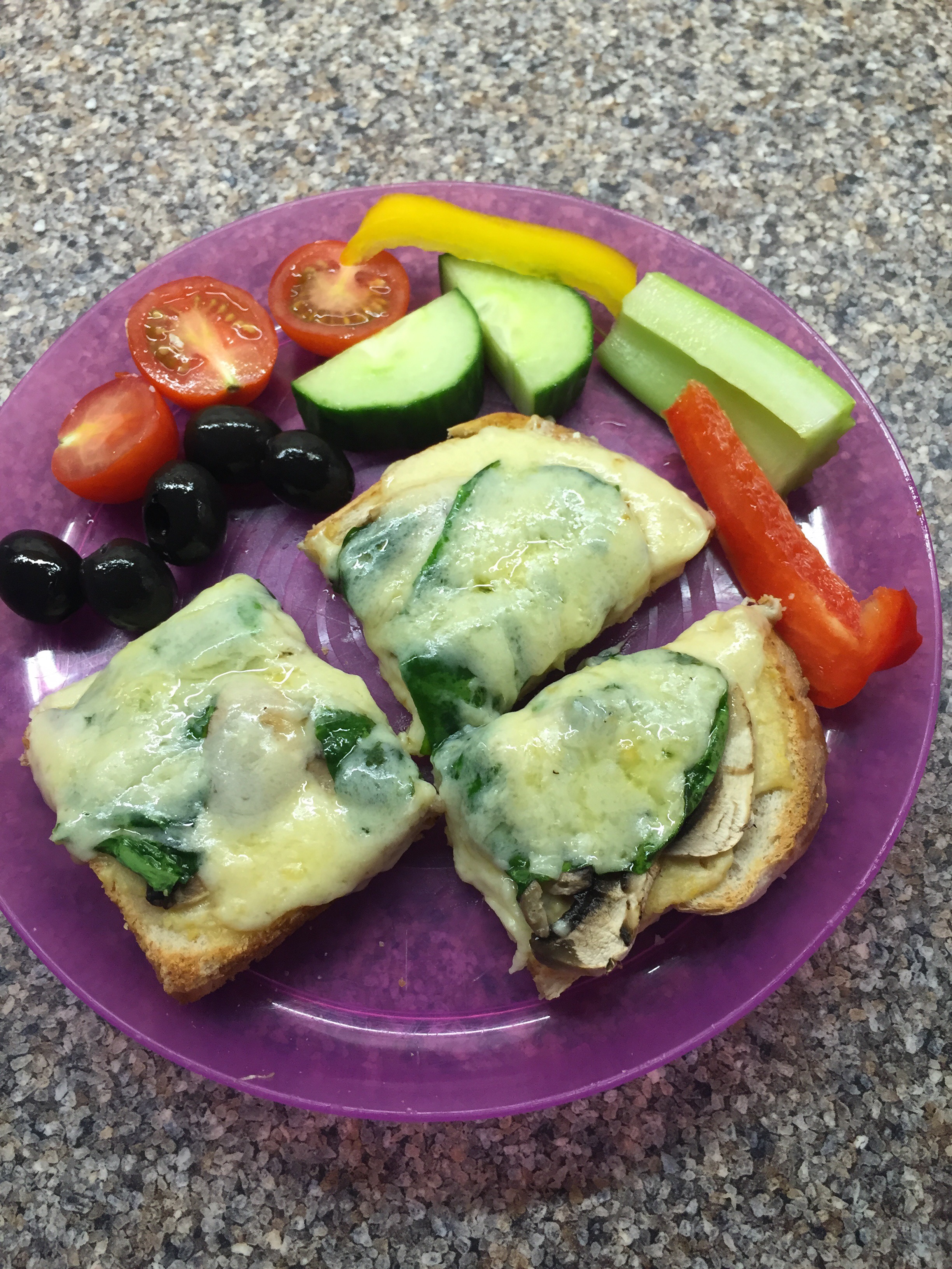 Lunch- Loaded cheese on toast and salad (5) and Pineapple (6)