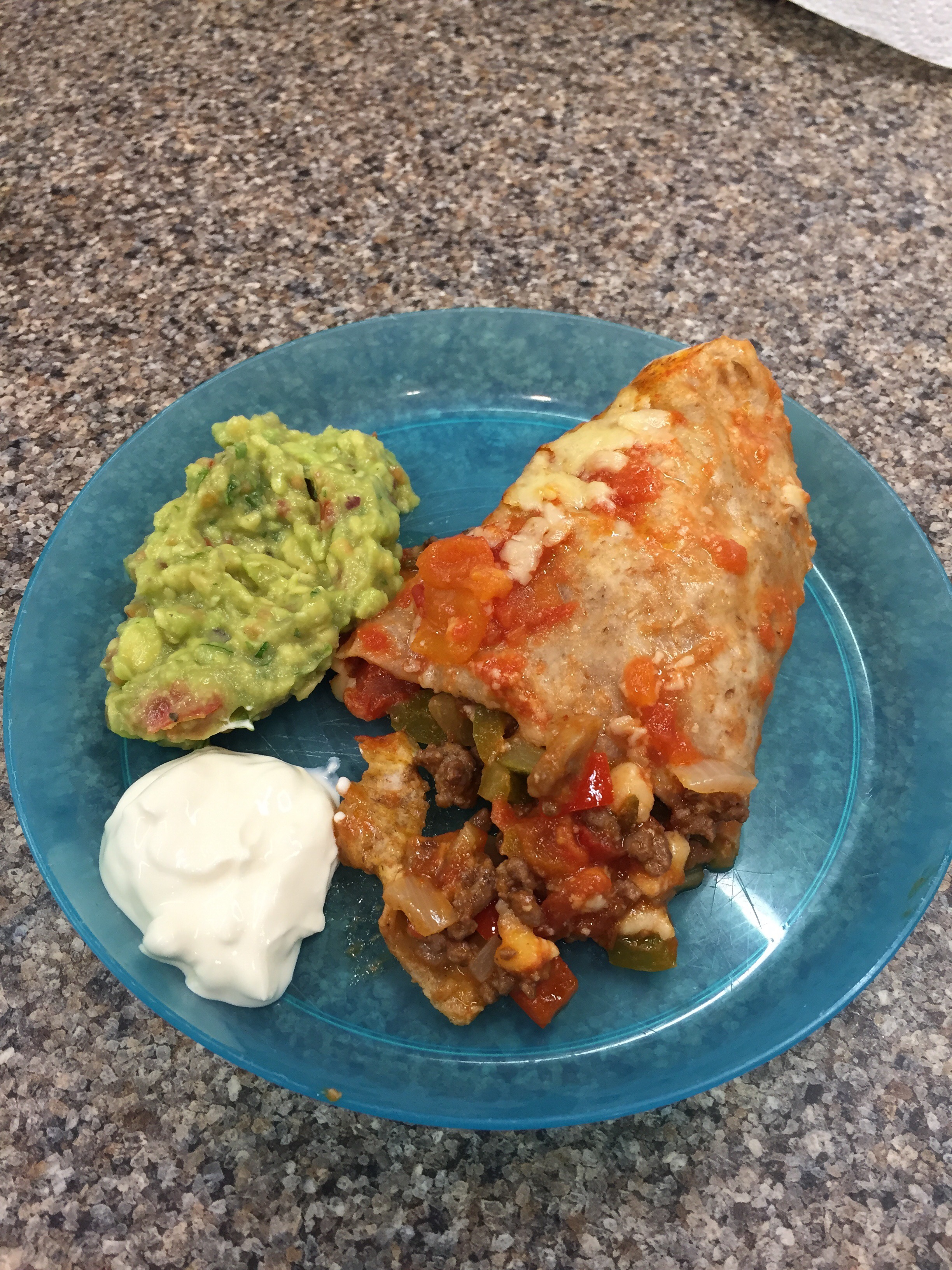 Dinner- Beef & vegetable enchiladas with guacamole (9) and cherries (10!)