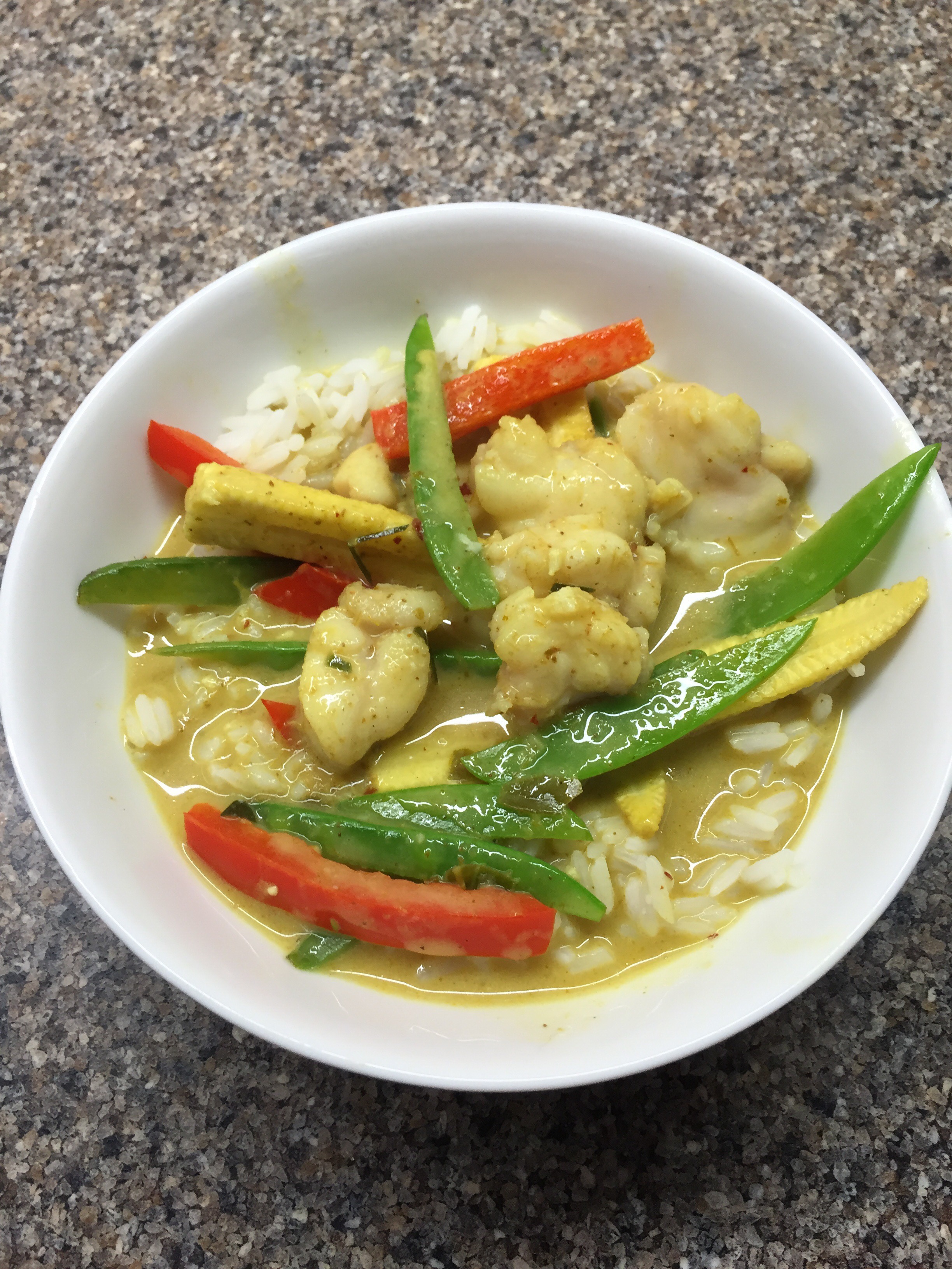 Dinner- monkfish Thai green curry (8) and frozen fruit salad (10!)