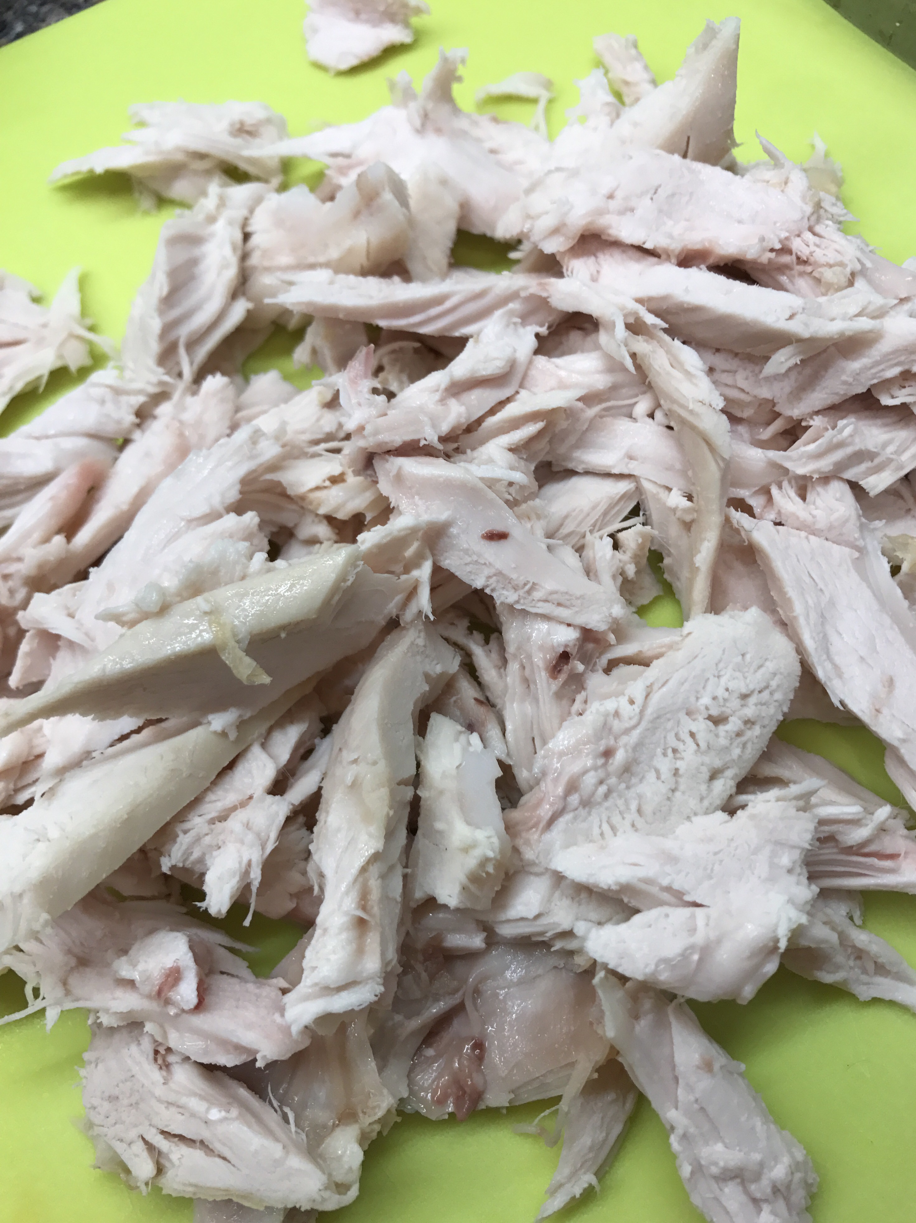 Meanwhile- strip the chicken into bite size pieces (probably best to avoid using the skin)