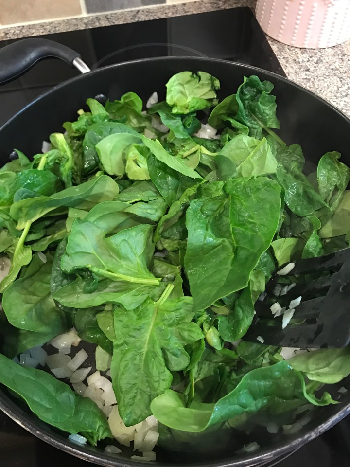 Add the spinach to the pan and turn the heat up slightly to wilt it