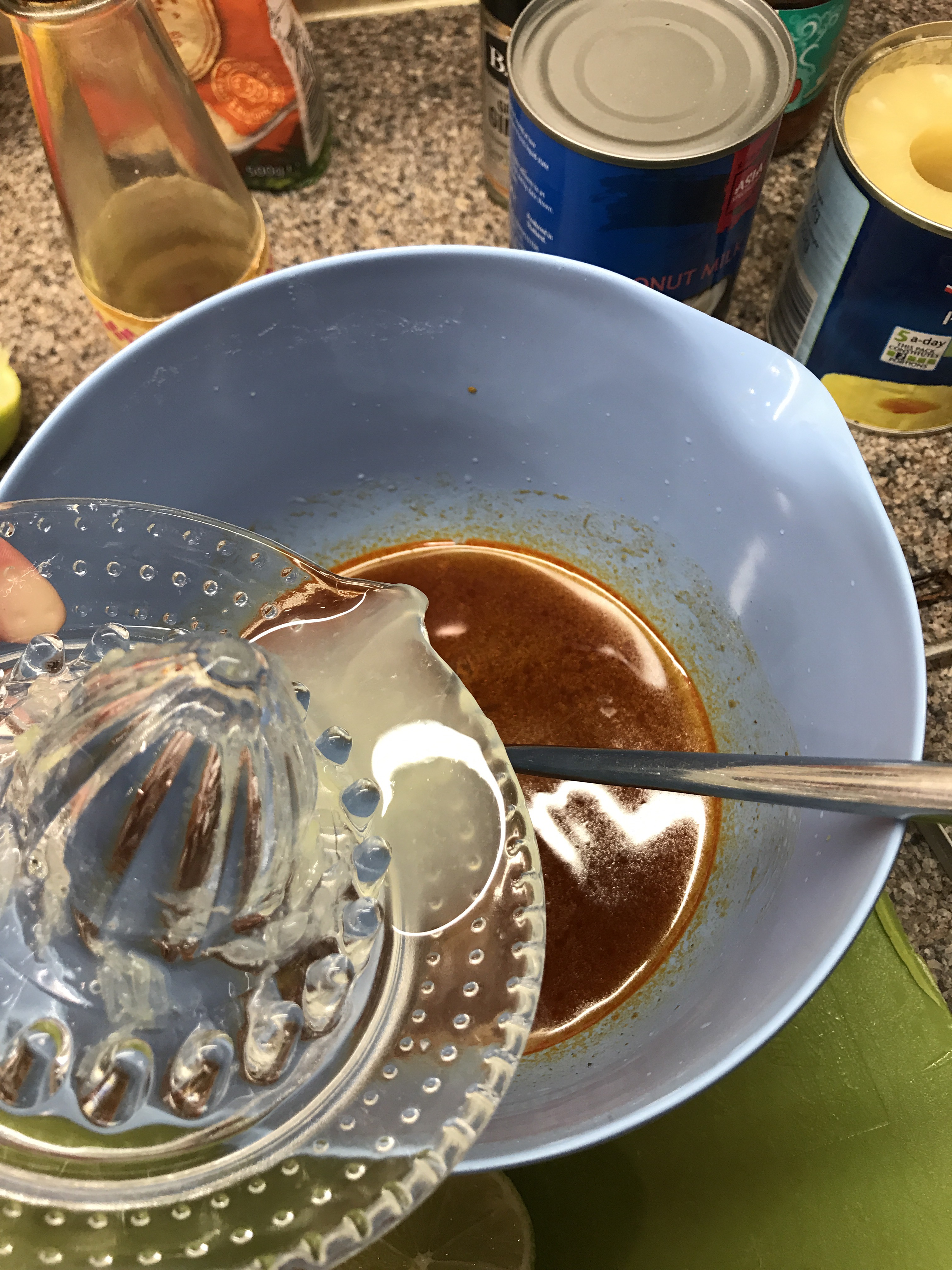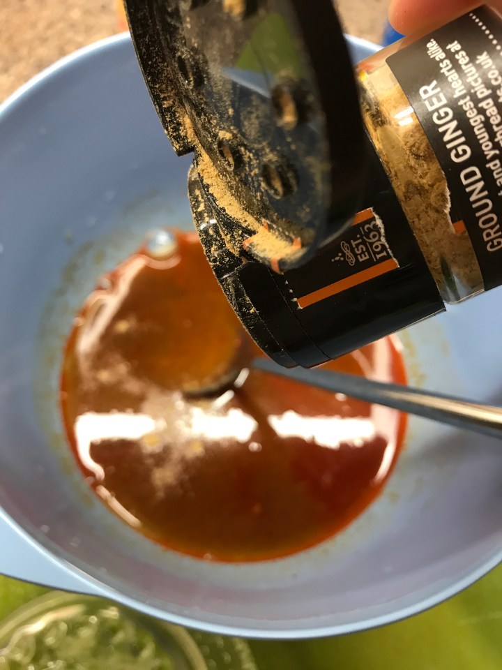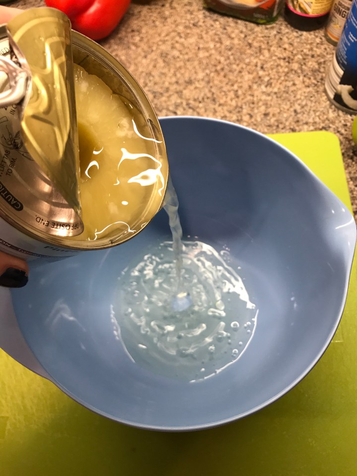 In a small mixing bowl pour the juice from the pineapple in (saving the chunks for later)