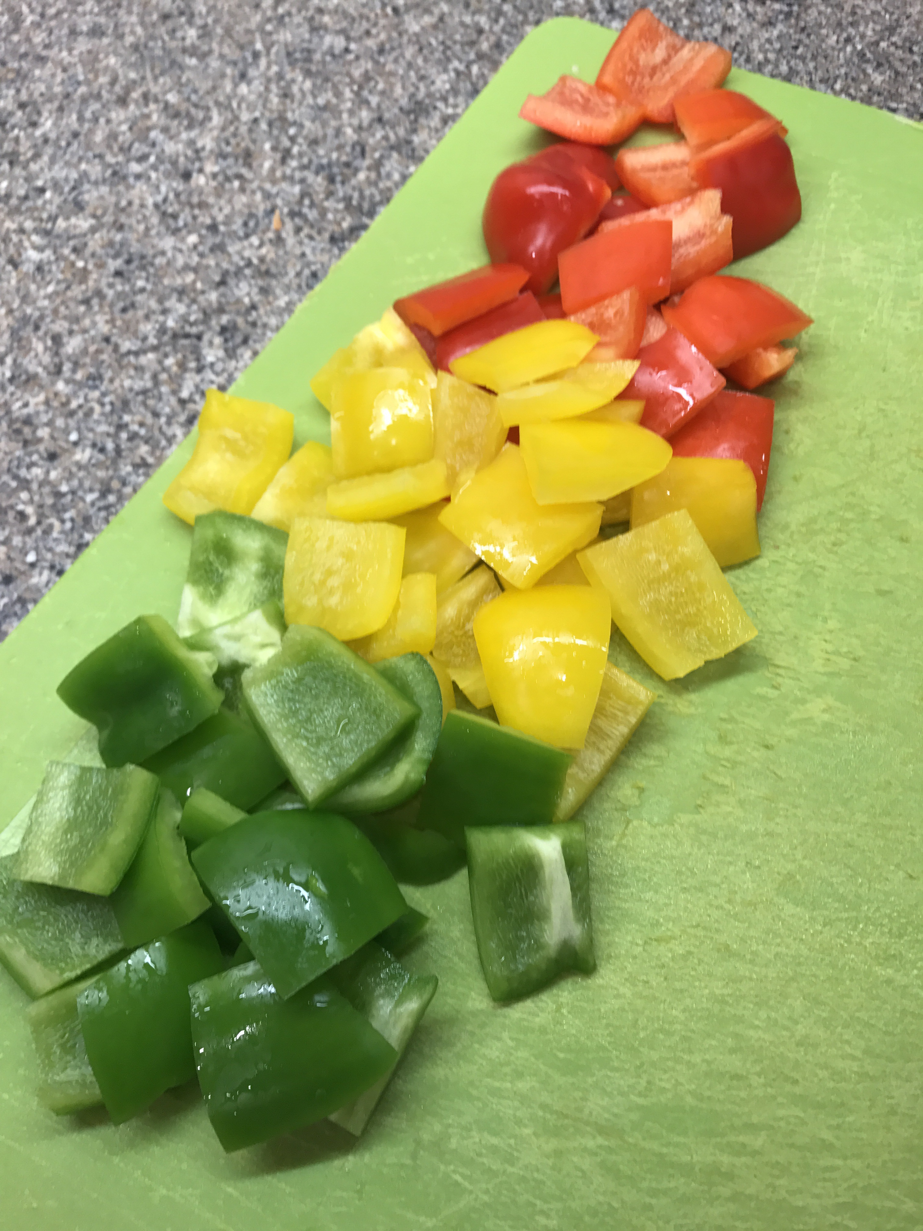 Dice the onion and finely chop the chillis. Peel the sweet potatoes and cut into medium sized chunks (they’ll dissolve into the sauce so it doesn’t matter exactly how they look!)