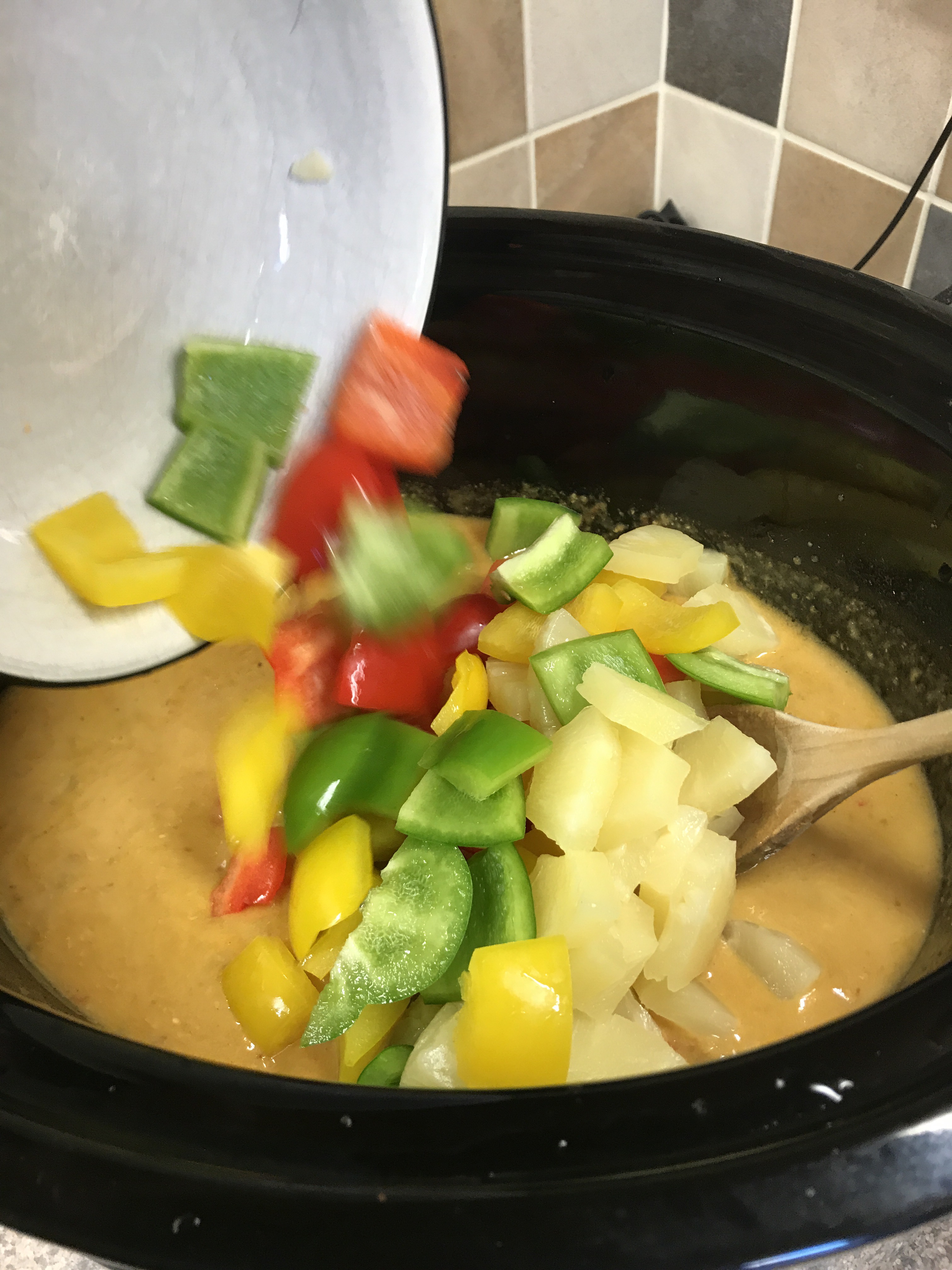 This slow cooker dish couldn’t be easier. I actually made it with more chilli and more curry paste than this recipe states but the kids moaned slightly that it was too hot so I’ve adjusted the recipe accordingly so it SHOULD suit children’s tastes a bit better!