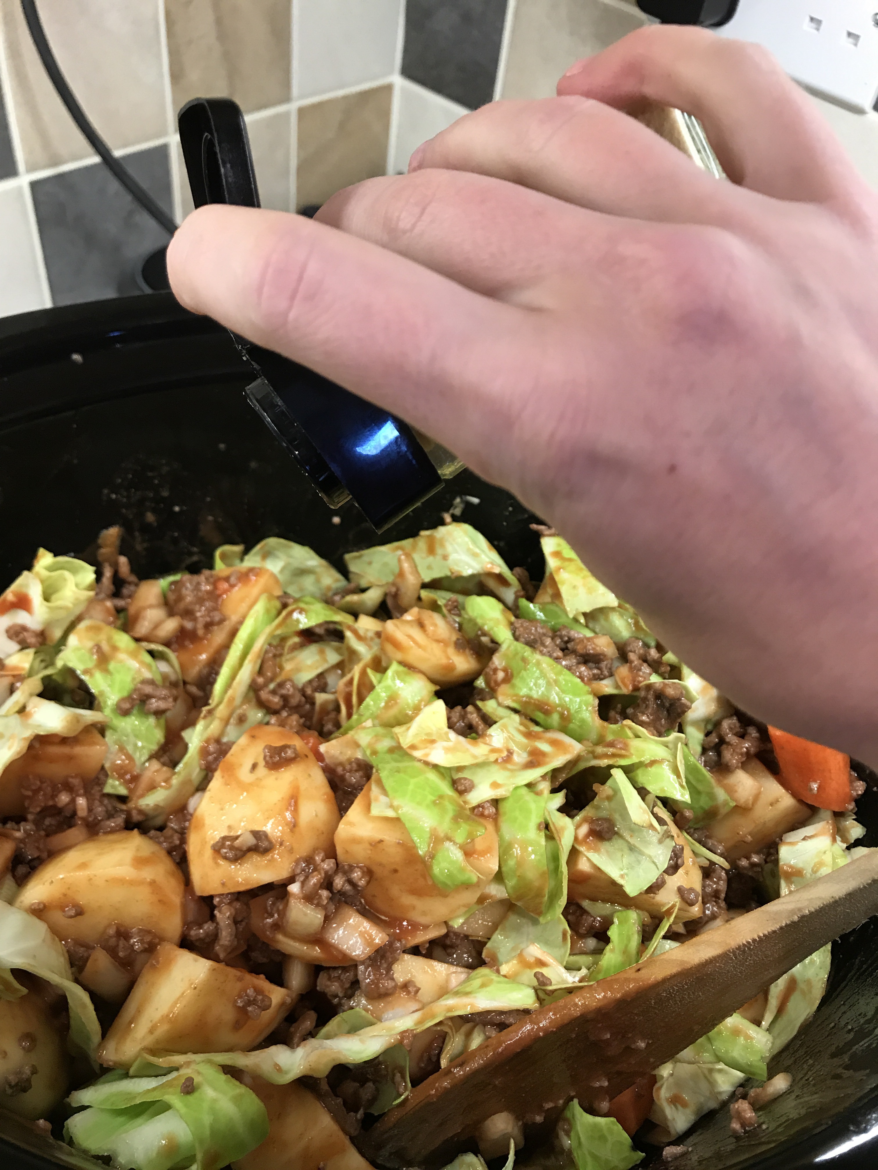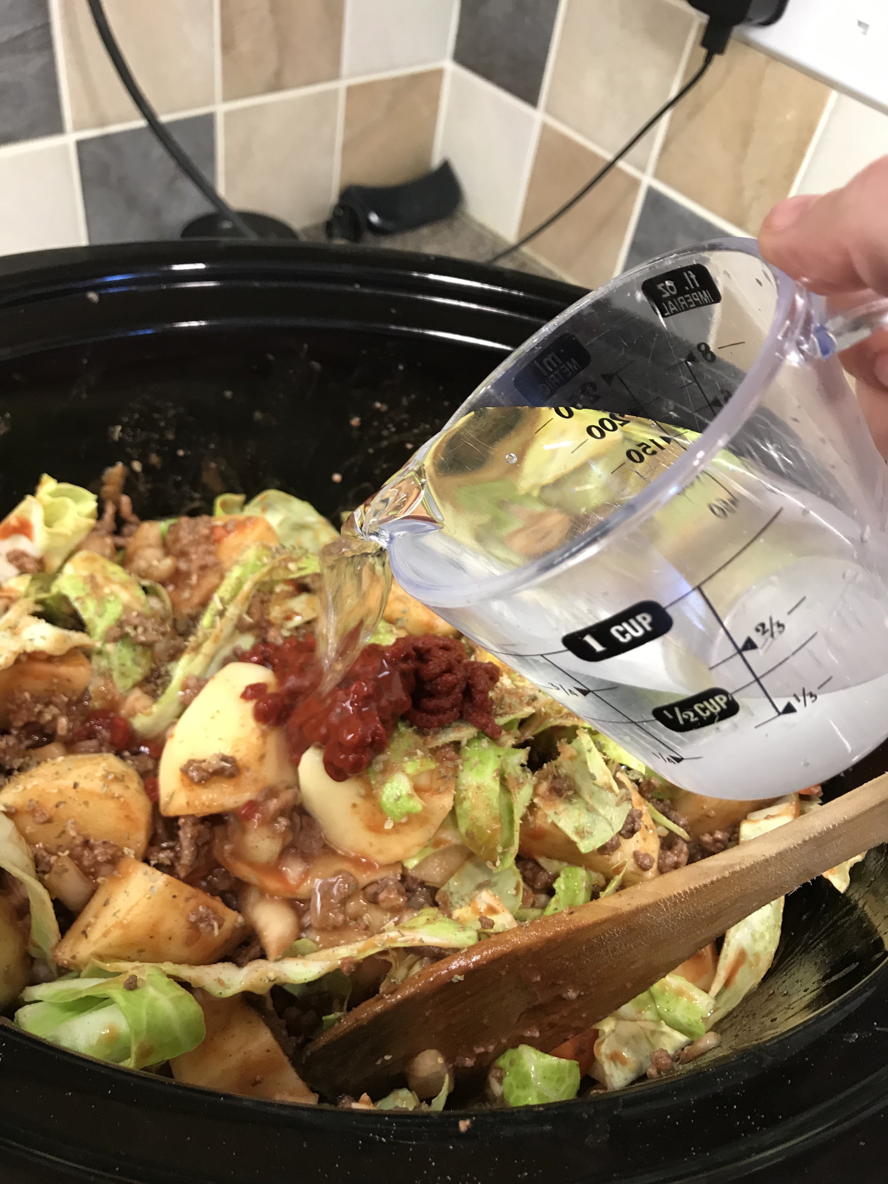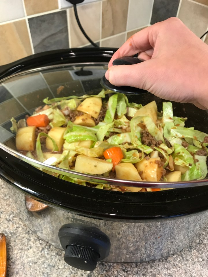 I’ve seen this sort of recipe referred to as a ‘poor man’s stew because it uses mince rather than steak. It’s a good one for throwing everything in at the beginning of the day and not having to do anything else until it’s time to dish up!