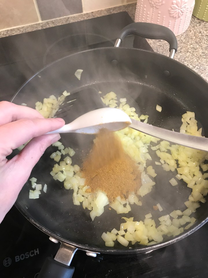 This is a super simple recipe which tastes surprisingly delicious!! I used 2 tablespoons of curry powder and ended up having to ‘cool’ it down slightly for my 3 year old with a dollop of yoghurt (my 18 month old wasn’t phased however) so if you want to stick on the safe side maybe go for 1 heaped tablespoon!