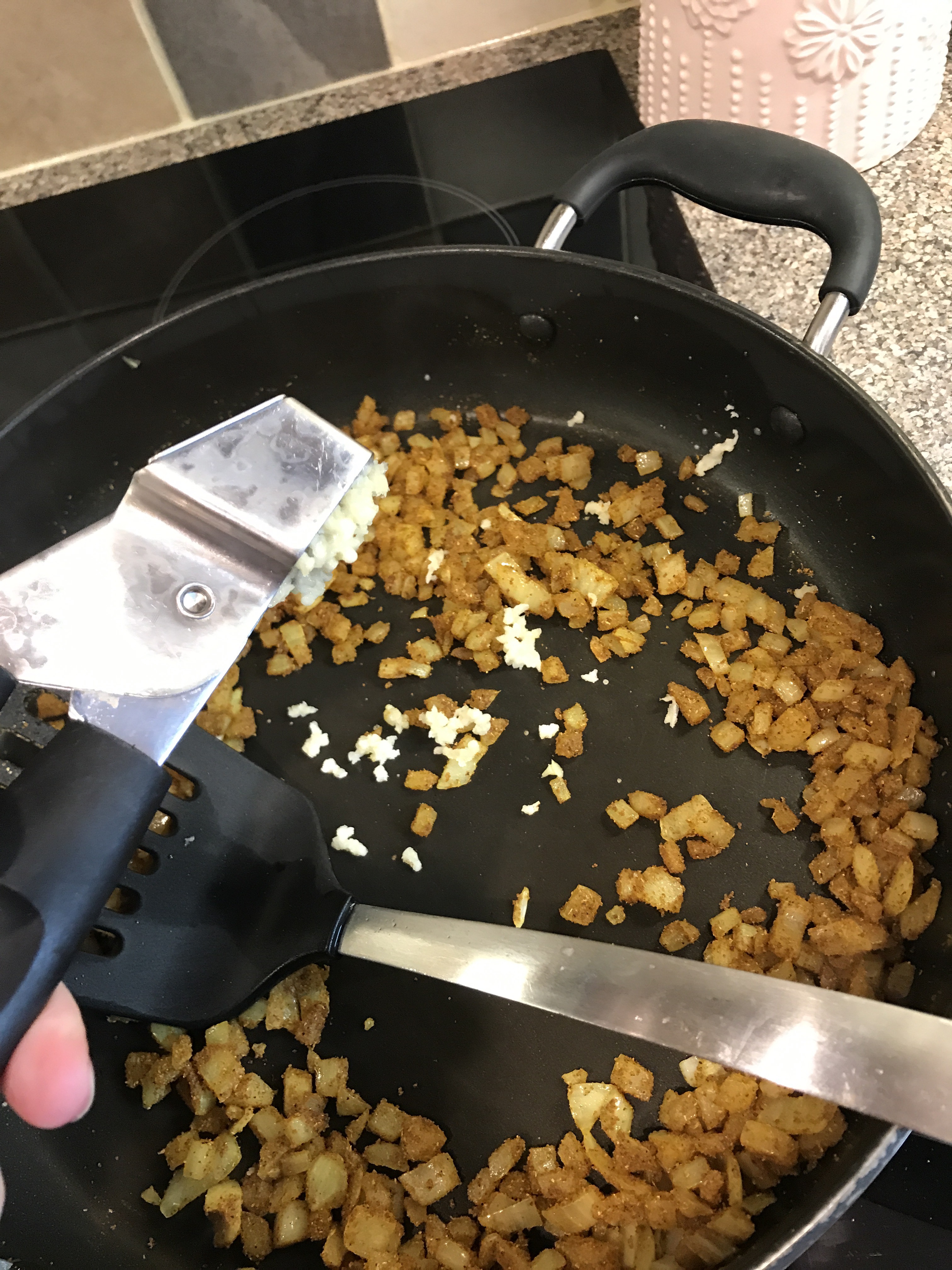 And crush the garlic in. Cook through for a couple of mins.