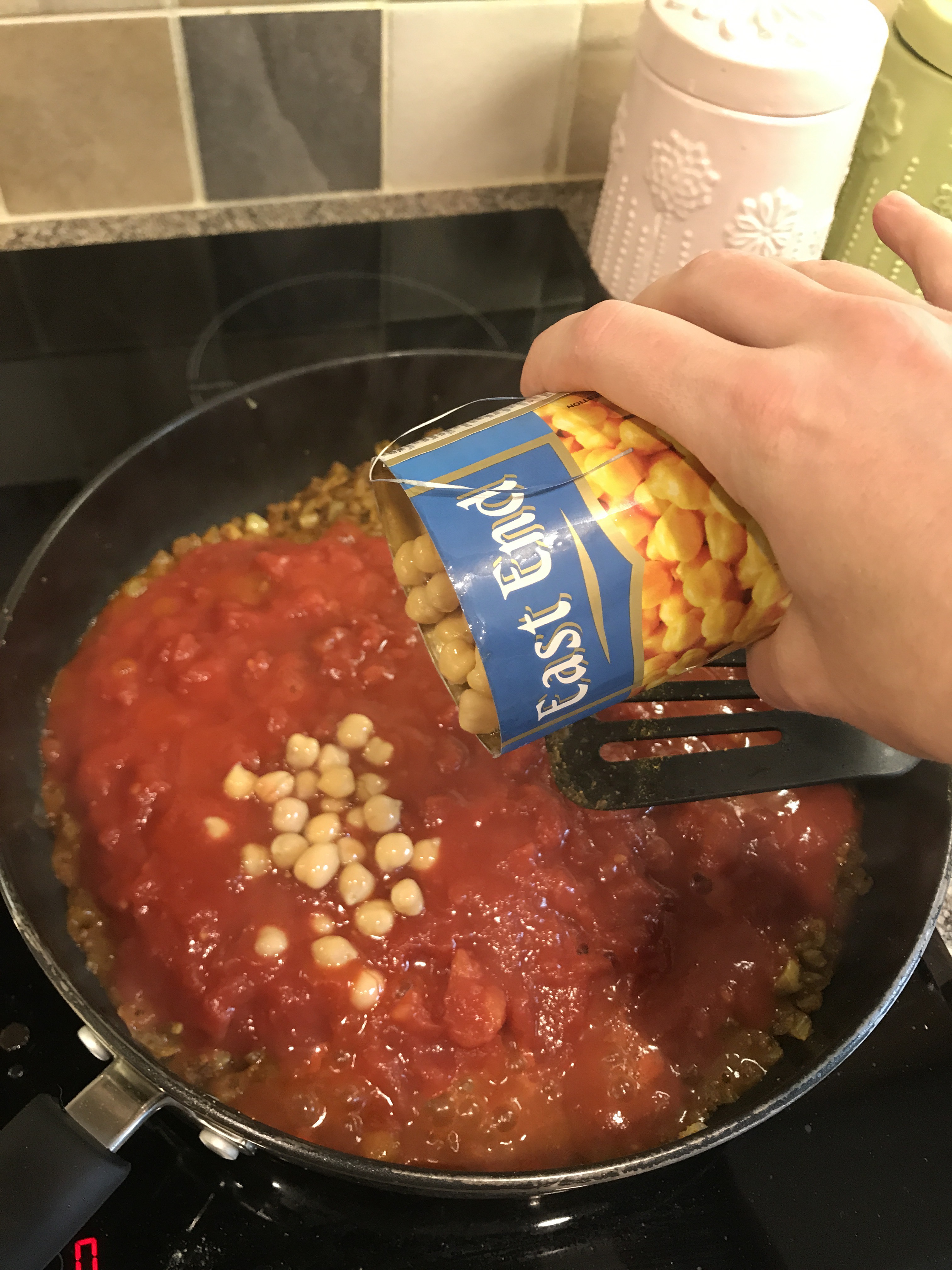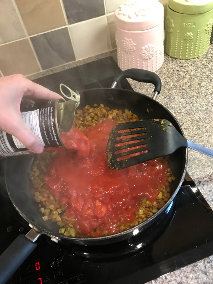 Pour in both tins of chopped tomatoes
