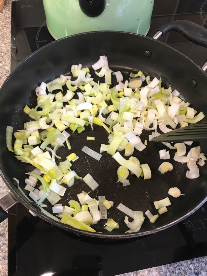Meanwhile, slice the leeks and mushrooms and peel the garlic