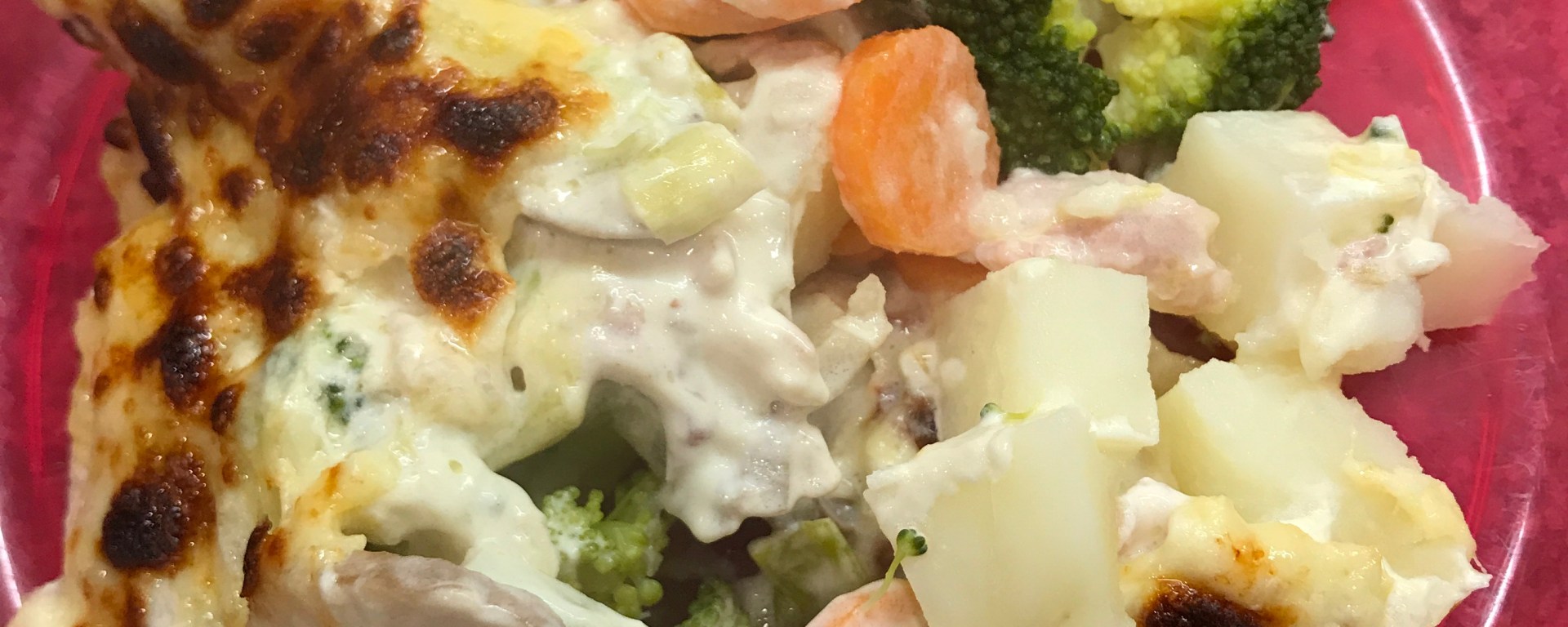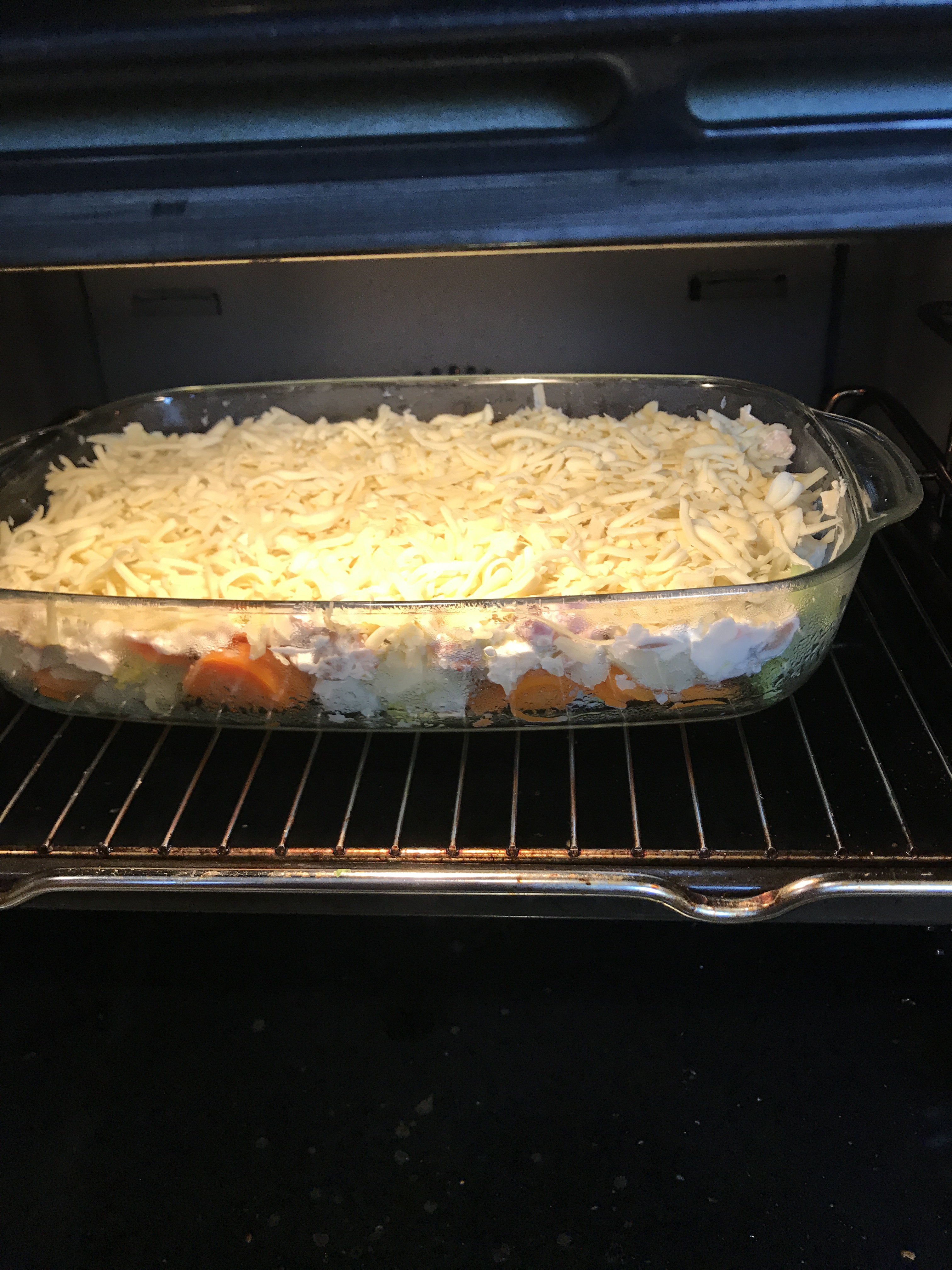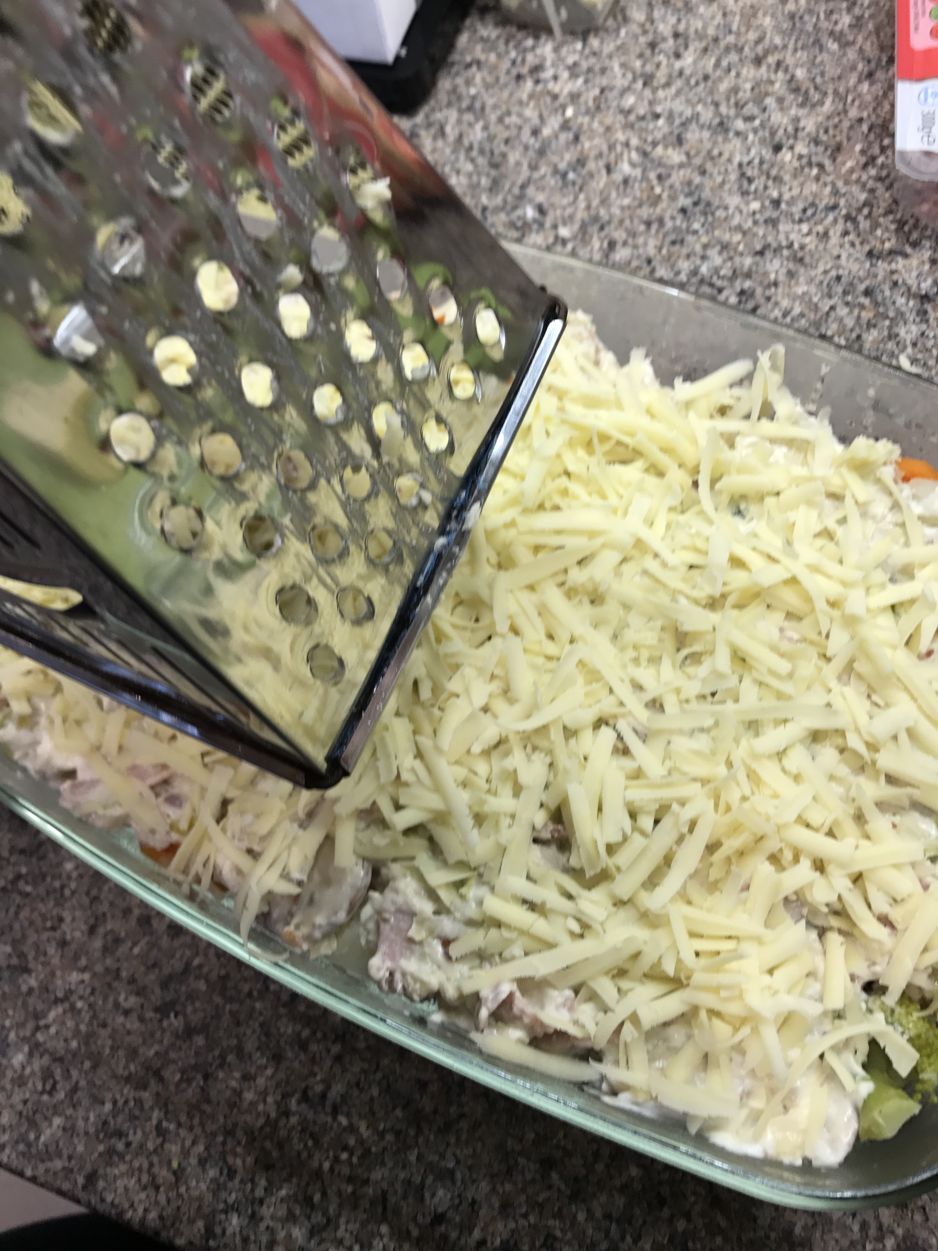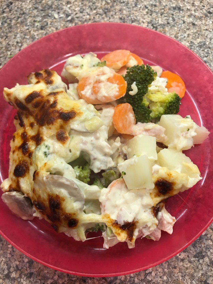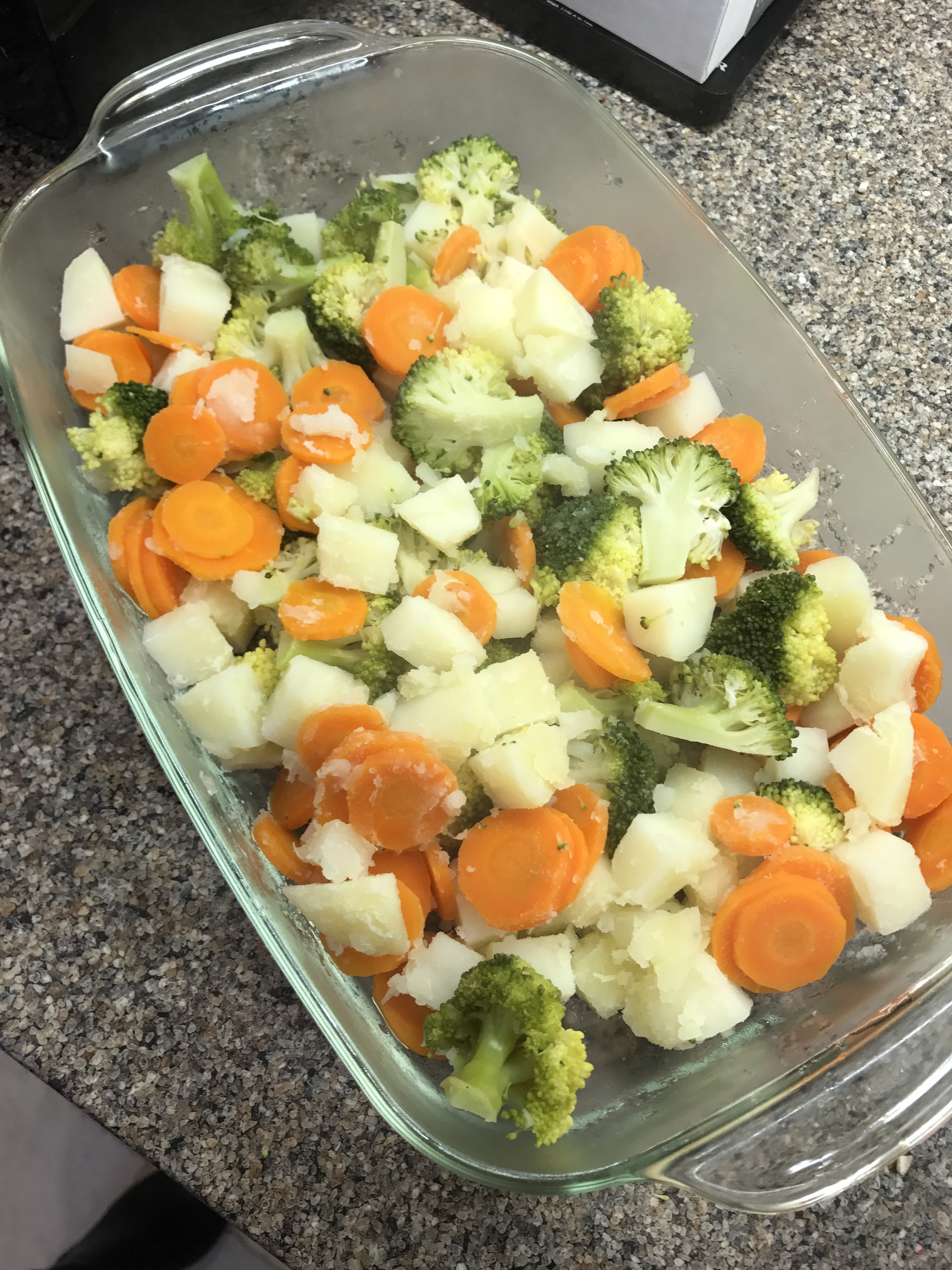 I can’t really take the credit for this dish- it was mainly created by my 3 year old who told me she wanted Carrots and broccoli with bacon and cheese on top for her dinner- so that’s kinda what I created for her!! I’ve called it a bake but it’s not baked! I just couldn’t think of a better way to describe what it is!! Open to suggestions…