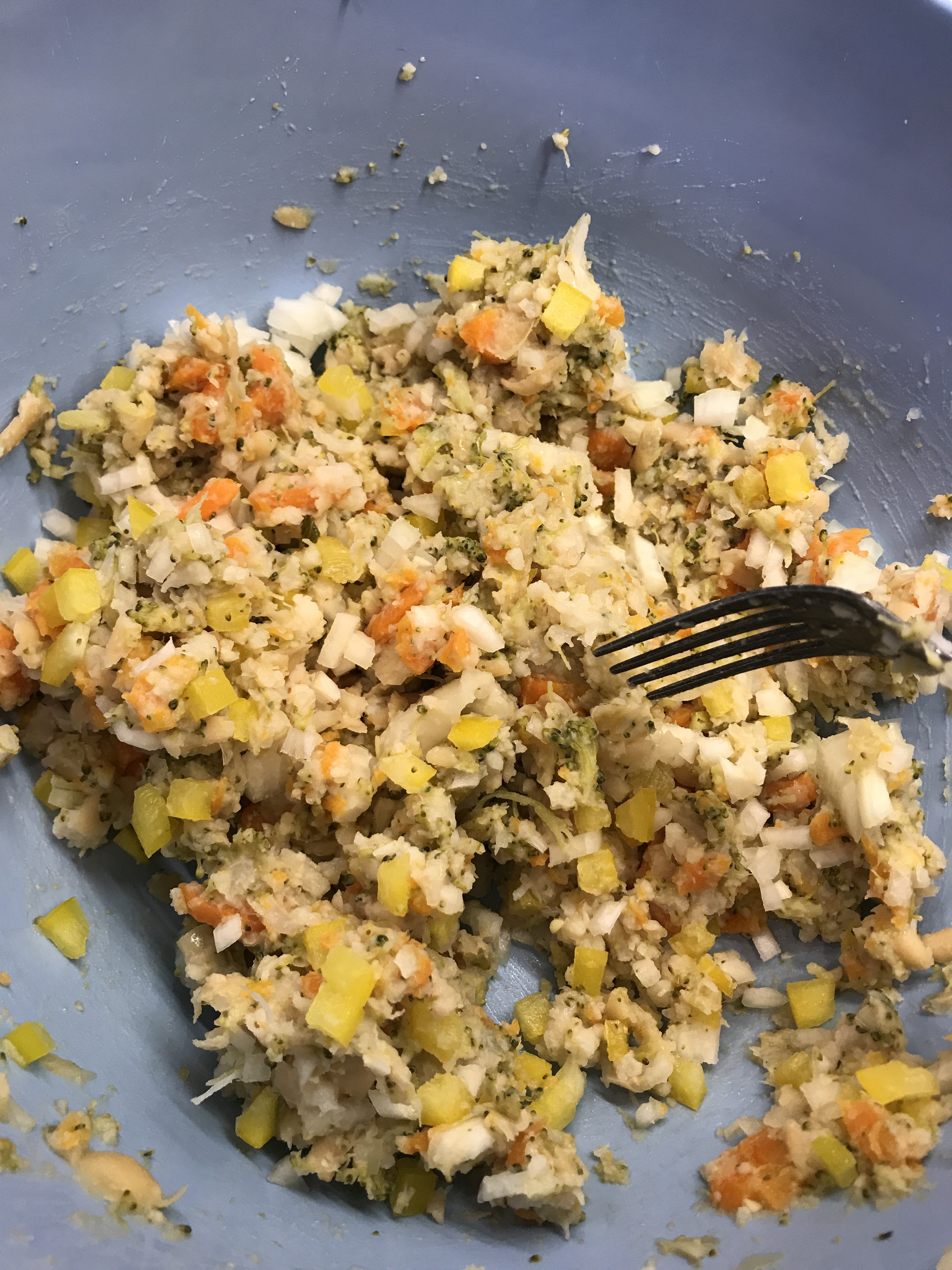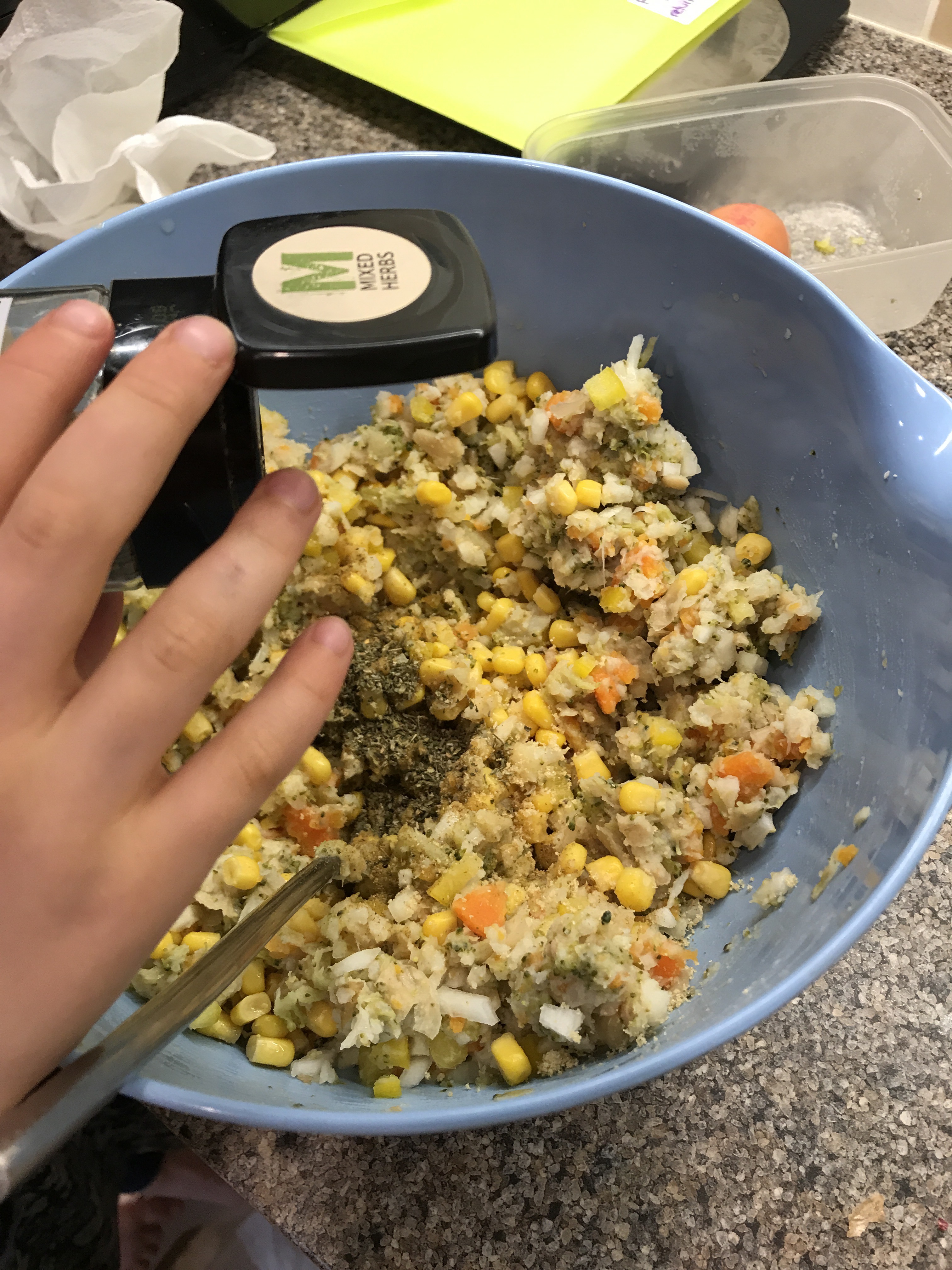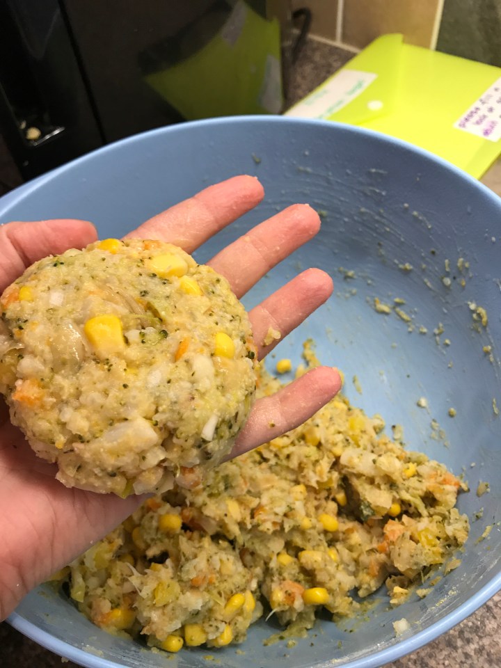Pretty much any combination of left over veggies will work here- something that mashes easily is good like cauliflower or sweet potato etc but veggies that don’t mash can be chopped finely instead and the beans should hold it all together!