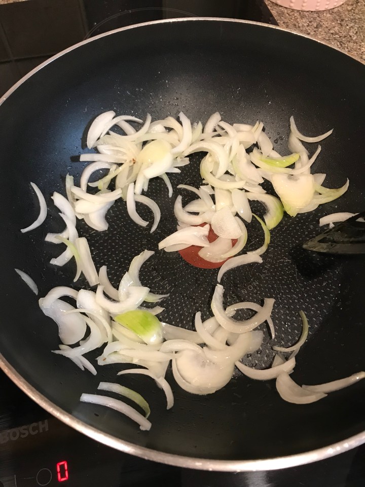 Slice the onions, heat a tablespoon of oil in a pan and cook the onions on a medium-low heat for around 10mins