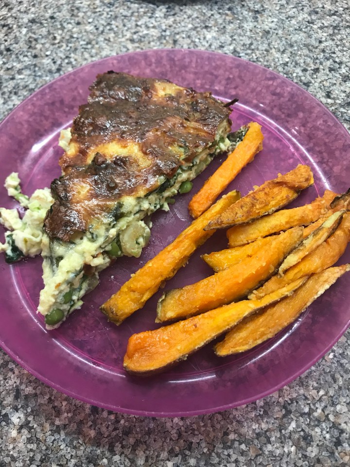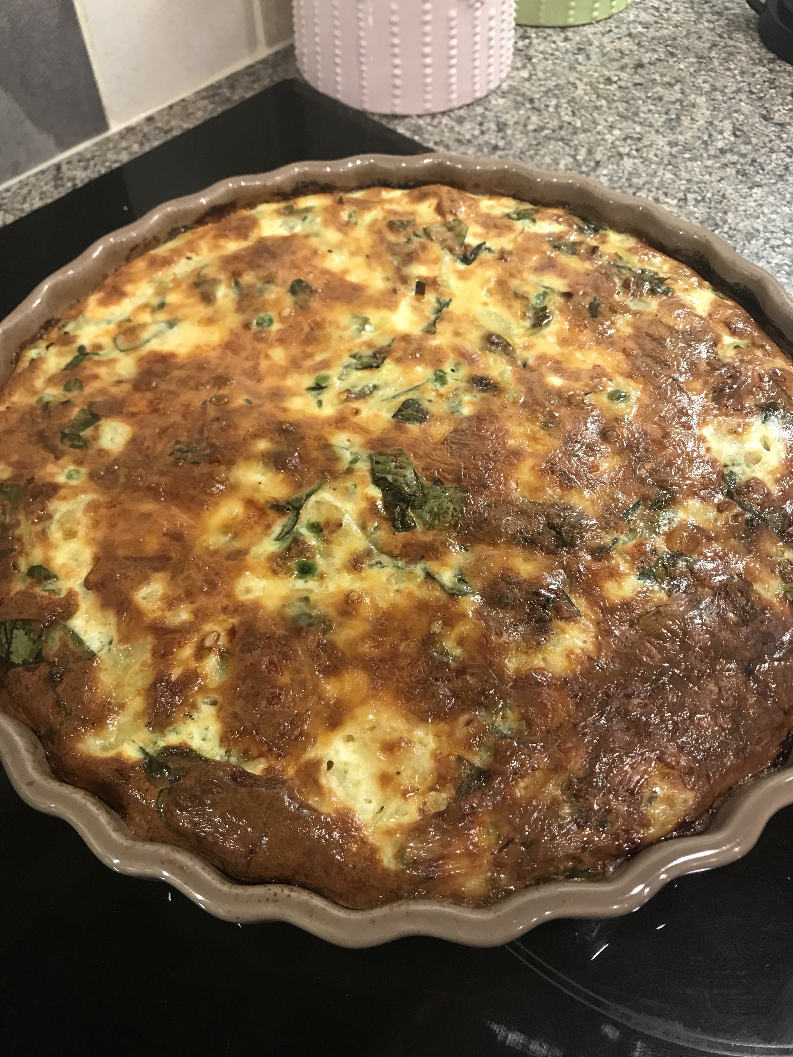 This is a really easy one for a mid week dinner. It takes very little prep work and tastes great! We had clean plates all round. It’s also really easily adapted- just use whatever you’ve got lying around that needs using up!! Ham, pepper, sweetcorn, broccoli, potatoes- most things work well in a quiche!!