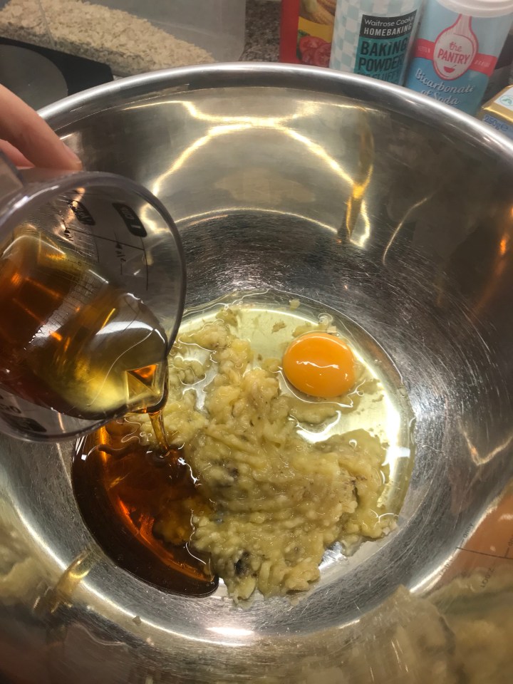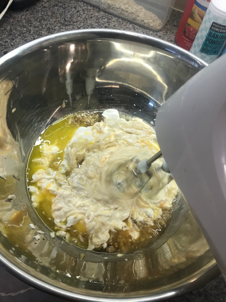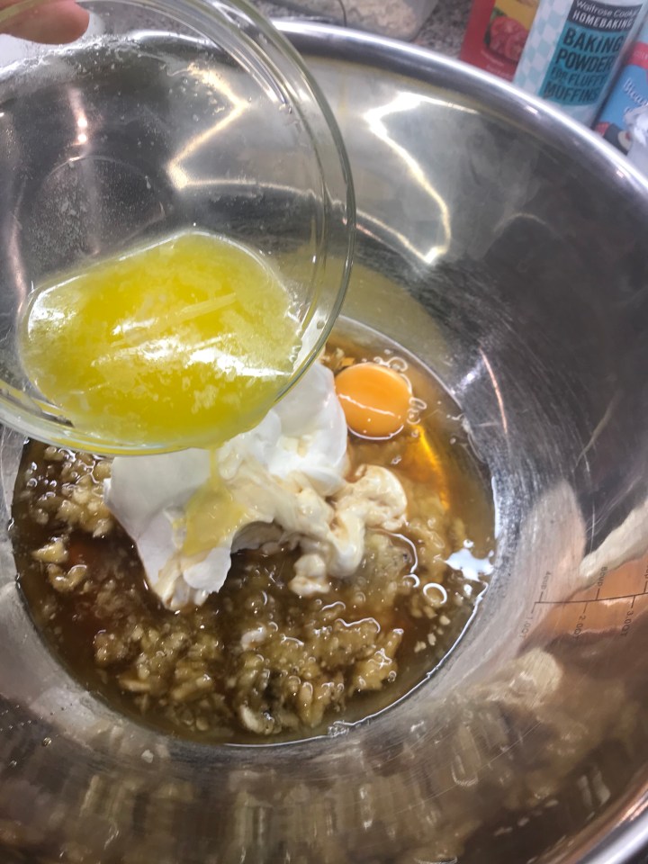 Pour the melted butter into the bowl and add the Greek yogurt.