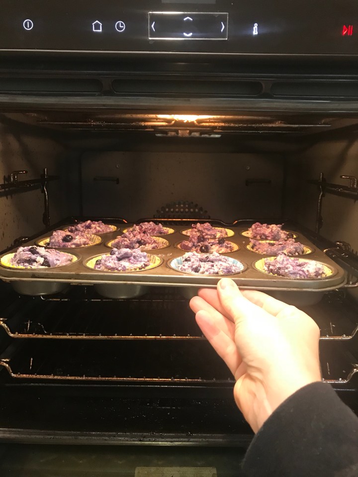 Place into a pre-heated oven at 180 degrees for around 25mins or until the tops are browned and a skewer comes out clean.